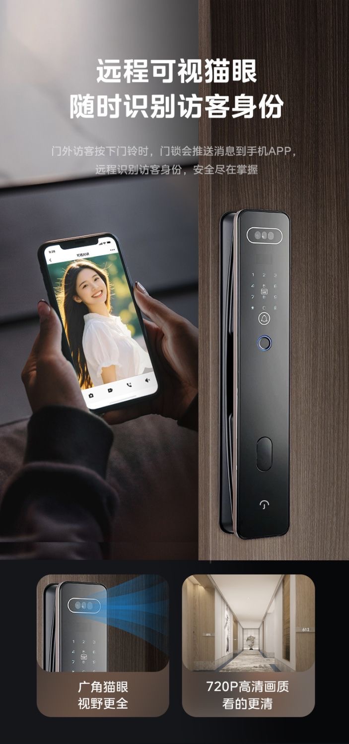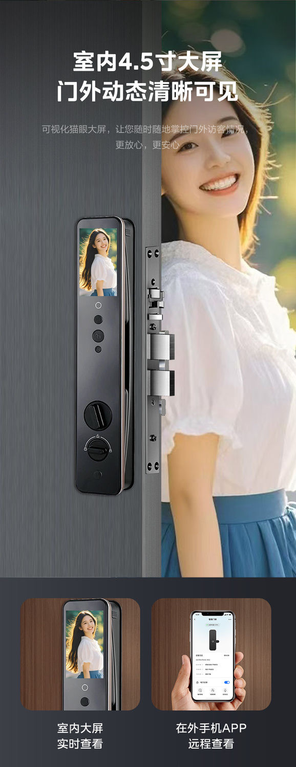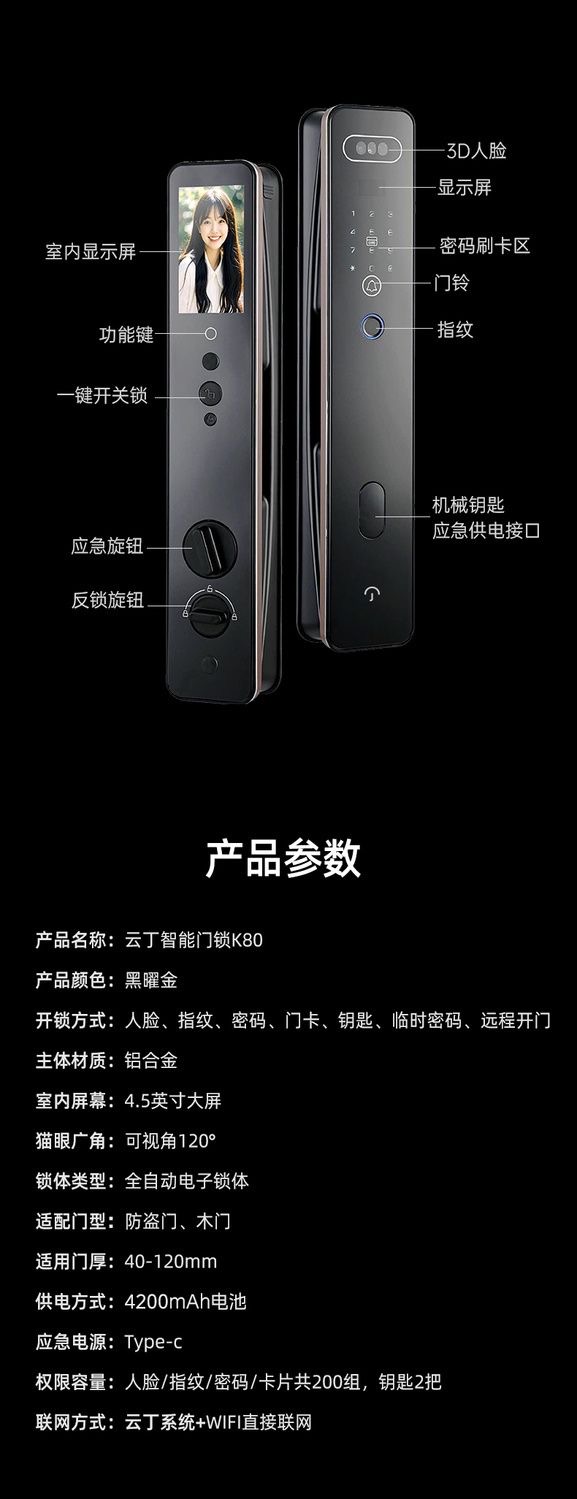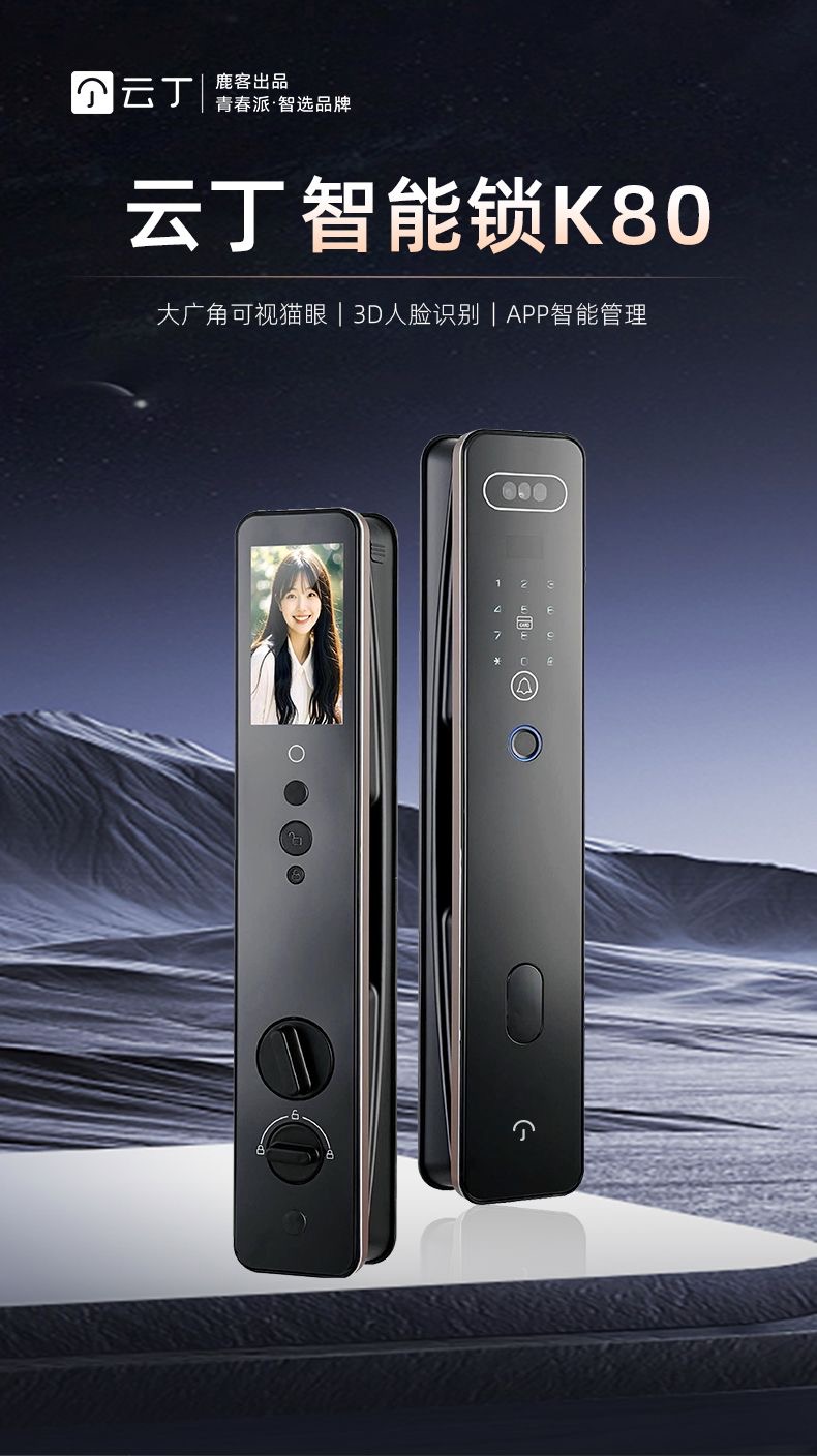 【北京】【鹿客云丁】智能锁K80 可视猫眼大屏指纹人脸密码锁家用防盗安全