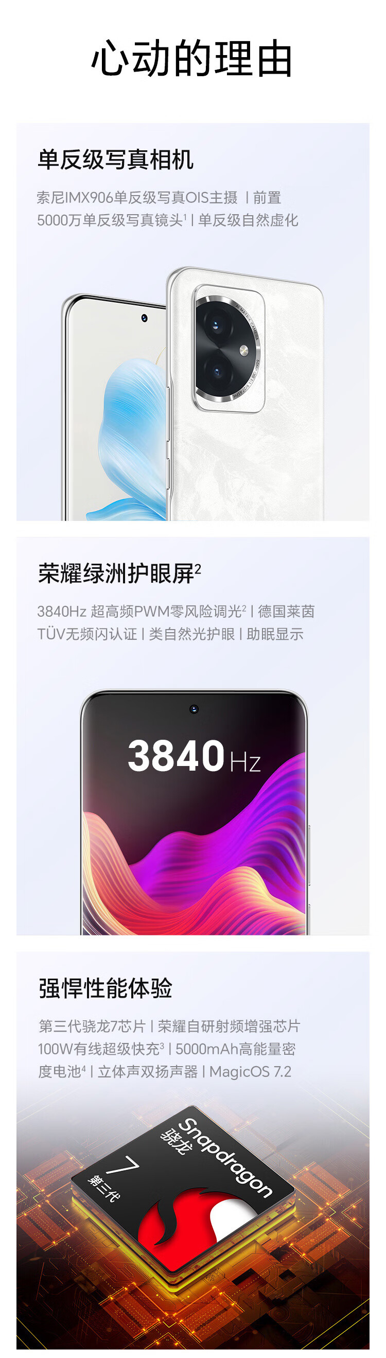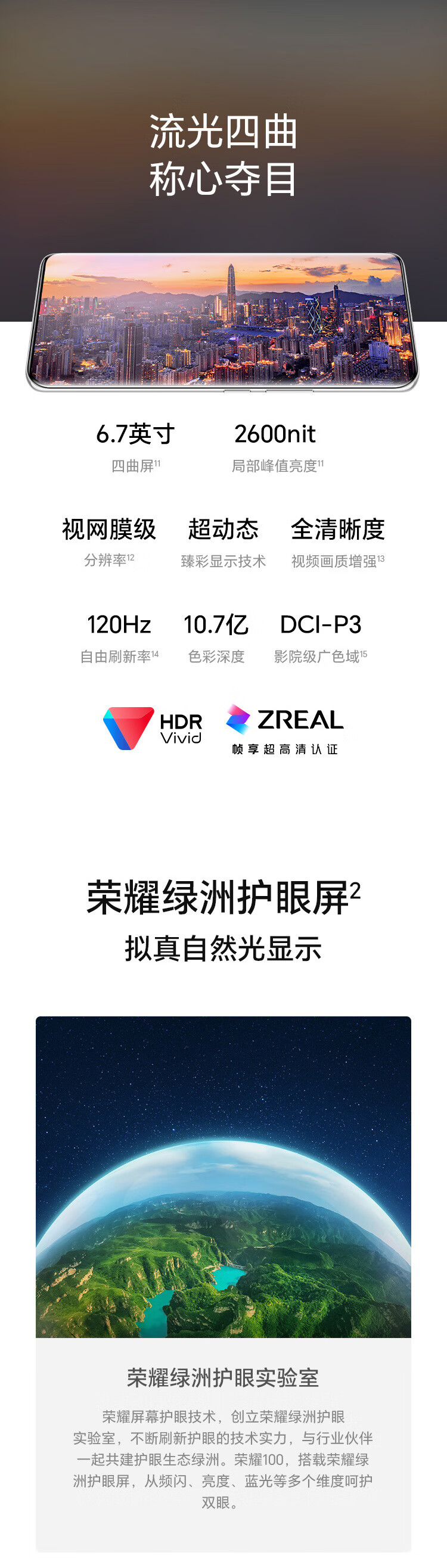 荣耀100 单反级主摄 荣耀绿洲护眼屏 第三代骁龙7 立体声双扬声器 OIS光学防抖 16+256 亮黑色 5G