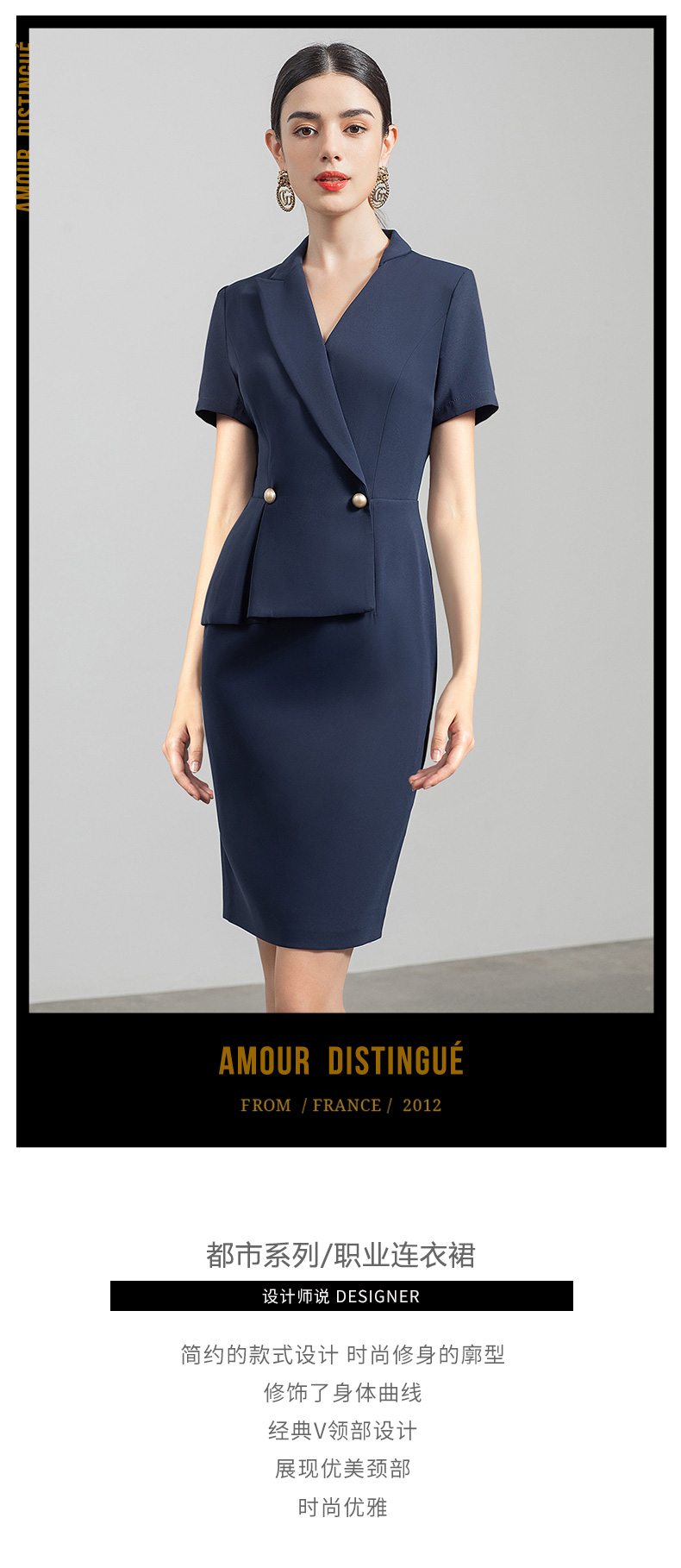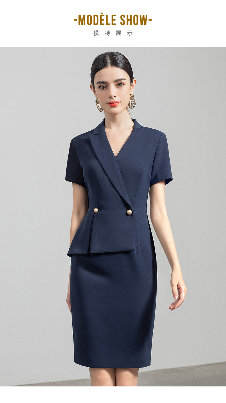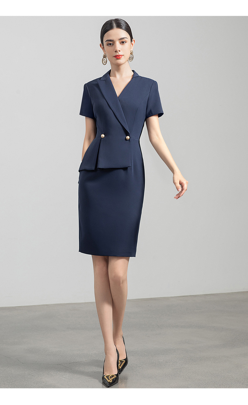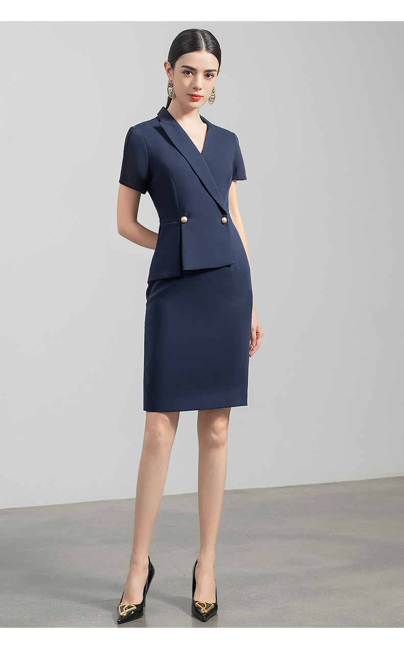 IWY/藏青色都市时尚职业女士西装连衣裙白领工作服上班职业装Q731