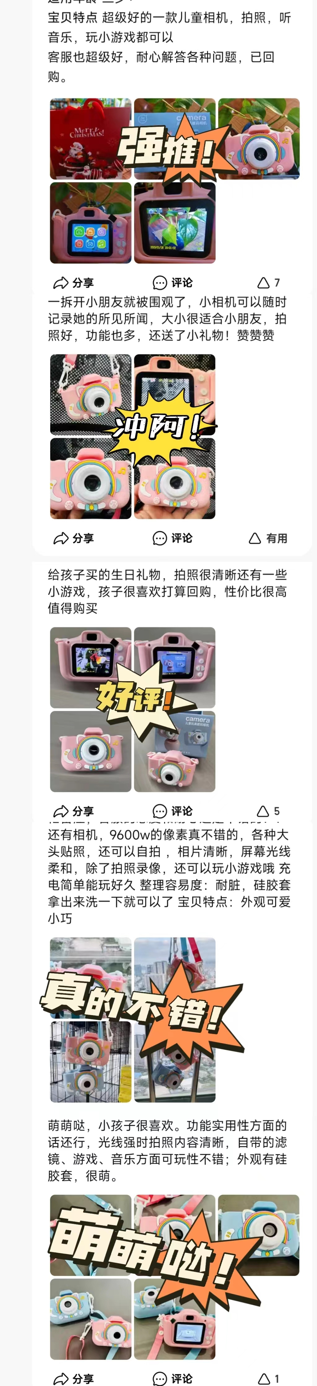 🌟而且最近也很流行买ccd相机,都要大几百呢 团上随便小红薯上面一搜,真的超多娃买儿童相机 看这个网上小姐姐说的不是ccd相机买不起,而且儿童相机更有性价比🥰真的超级心动。