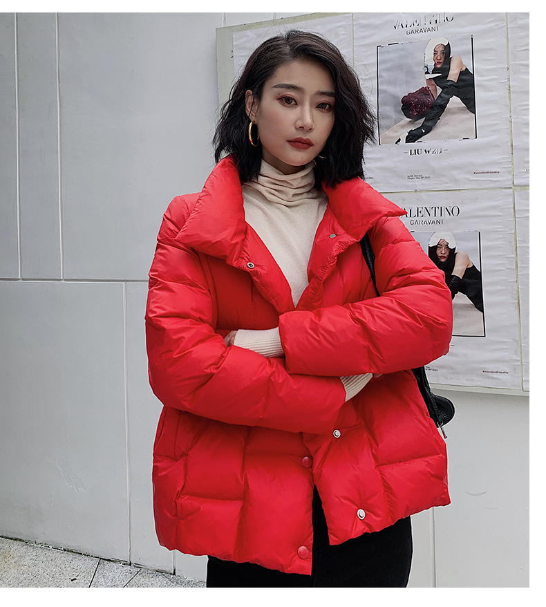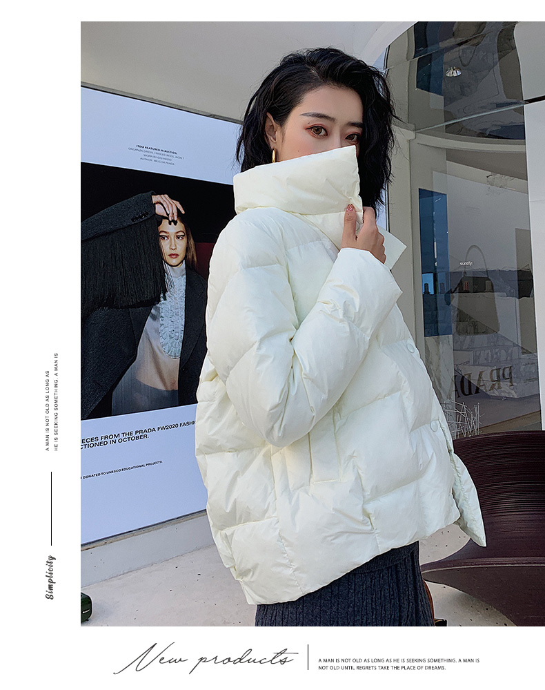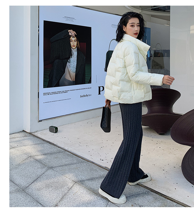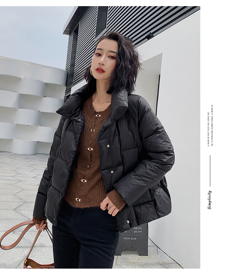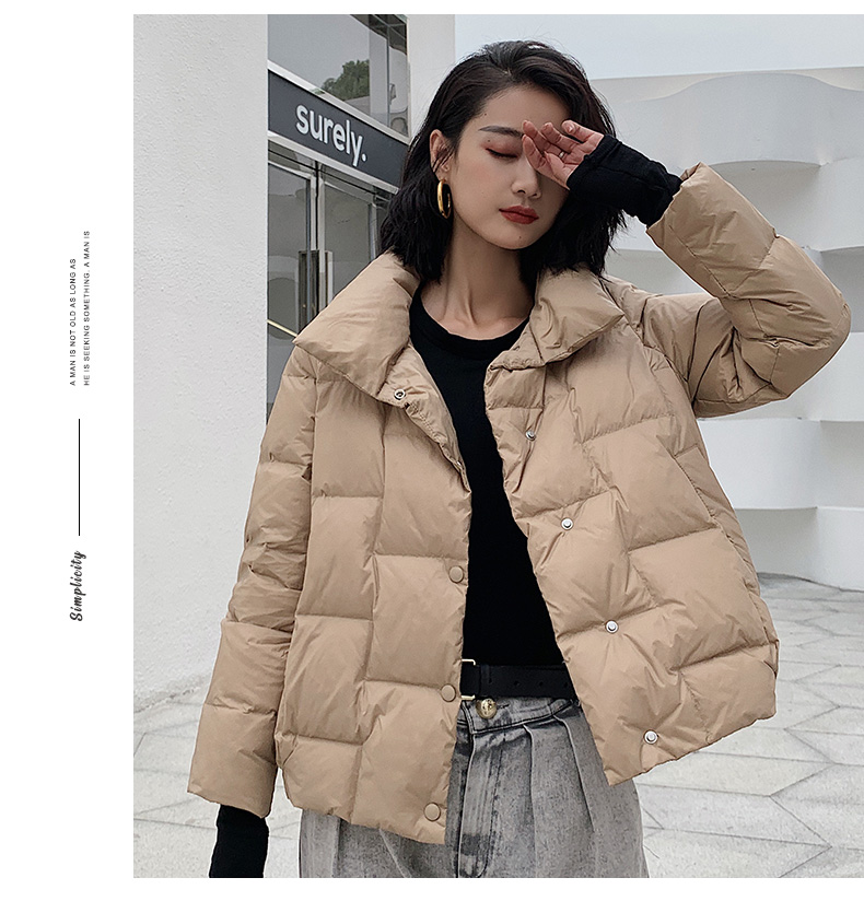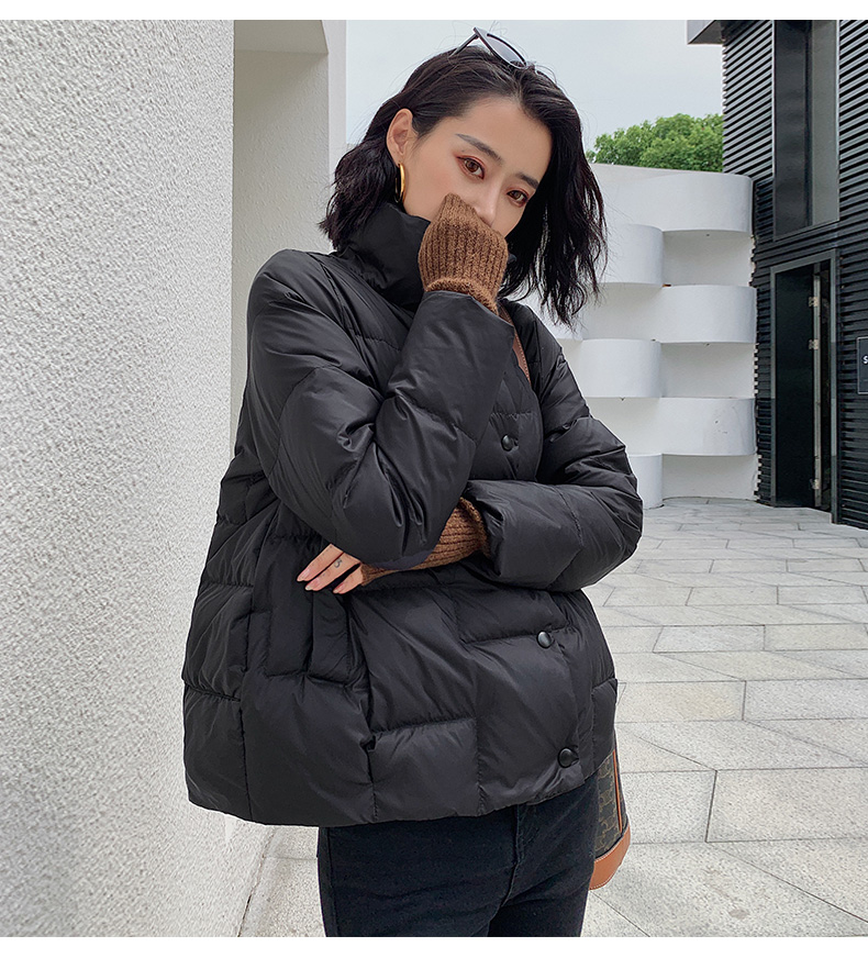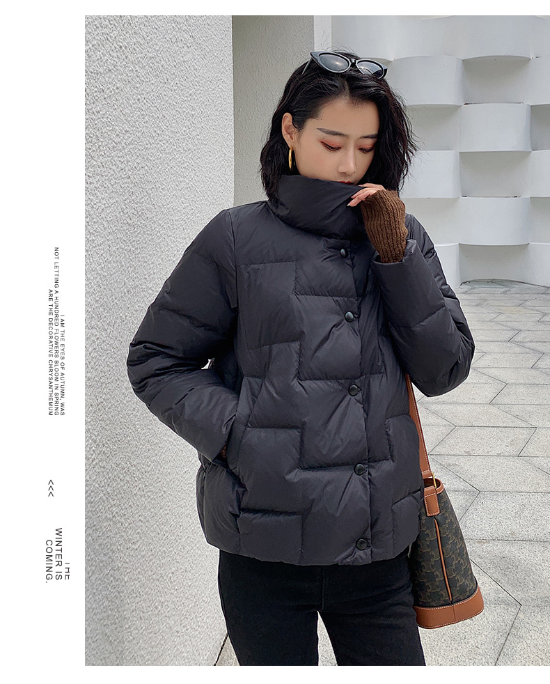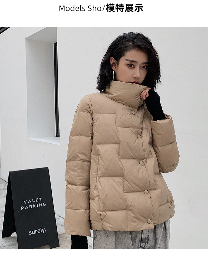 轻薄短款冬季外套服2023新款女士宽松立领保暖时尚简约外套女 qo56