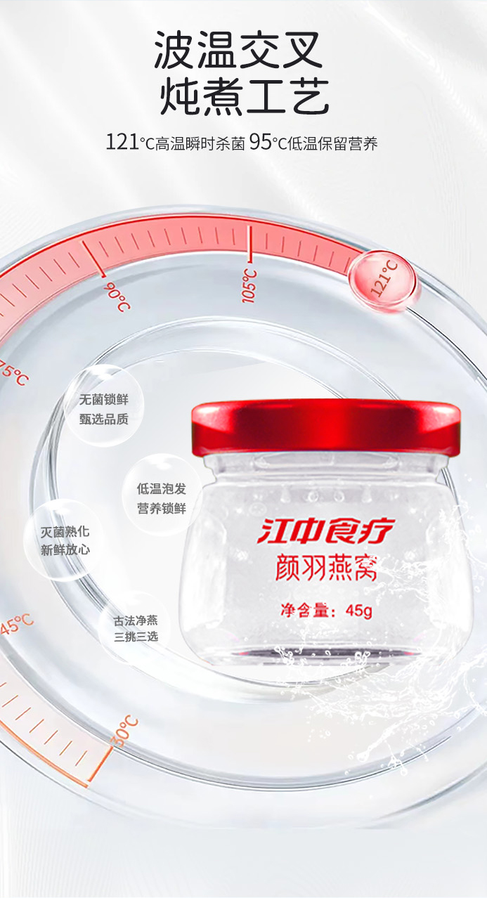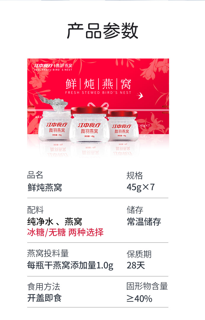【每天一杯奶茶钱享鲜炖燕窝 】江中食疗 颜羽鲜炖燕窝 45g*7瓶 燕窝含量1g 孕妇食品即食礼盒 现炖现发 全国顺丰包邮【可用储值】