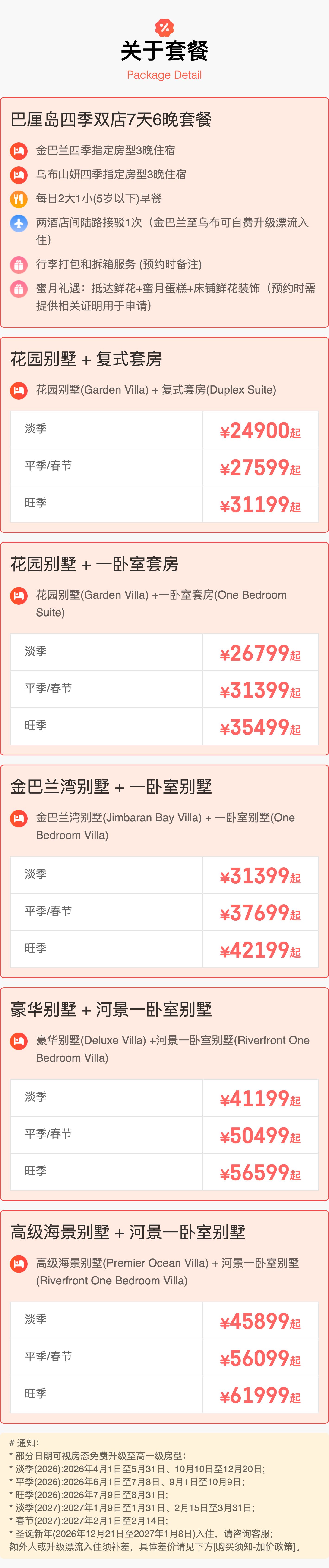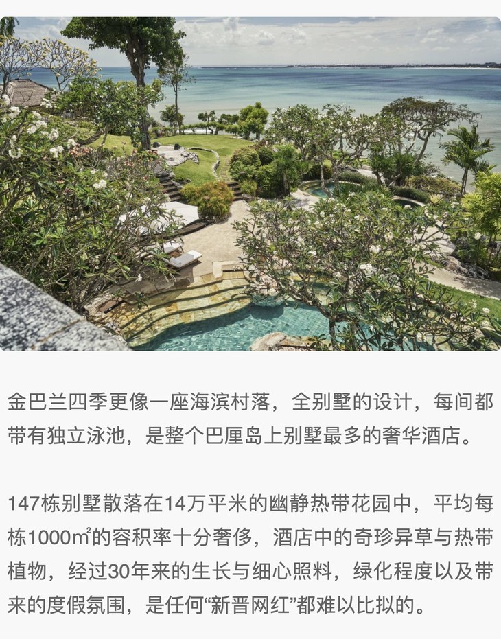 7天6晚【巴厘岛四季双店连住】春假/五一/国庆/暑期均可预定!享限量免费升房!住金巴兰湾四季观超美日落,深入乌布山妍四季深度体验隐匿式度假,还有免费接驳!入住前20天还可免费取消~