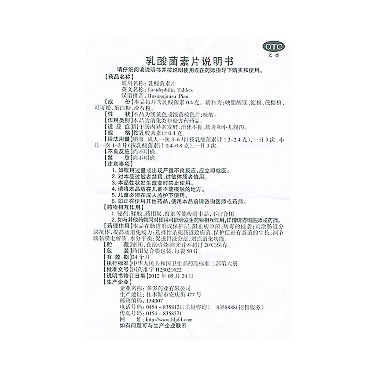 多多药业乳酸菌素片0.4g*50S