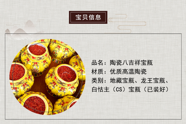 精品陶瓷八吉祥宝瓶/龙王/地藏/白怙主财神/宝瓶已装藏