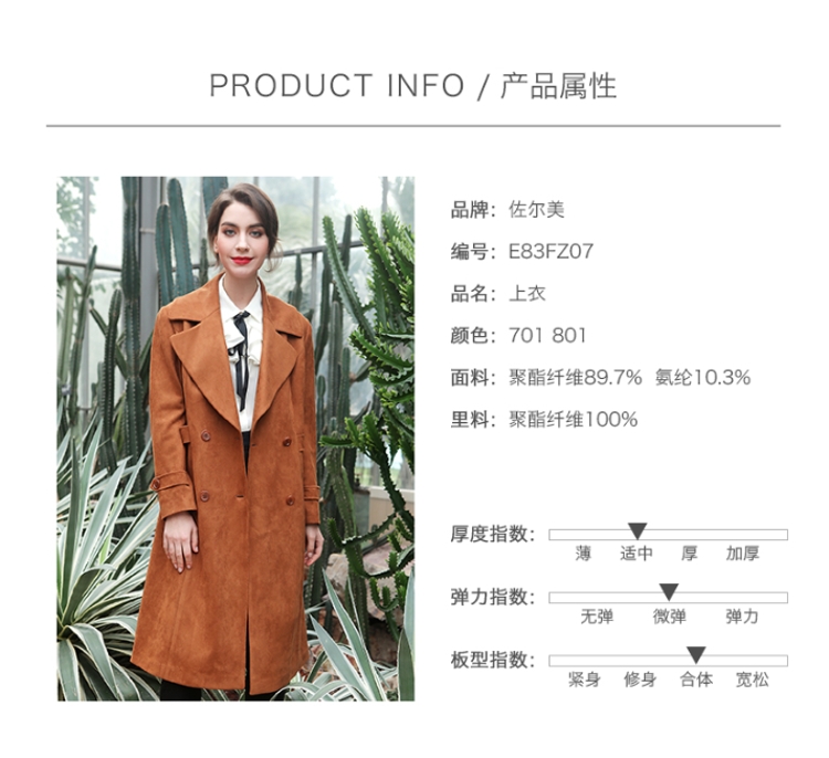 佐尔美春秋季新品纯色典雅减龄中老年女士过膝风衣外套E83FZ07