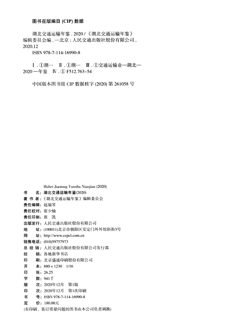 书名:湖北交通运输年鉴(2020)