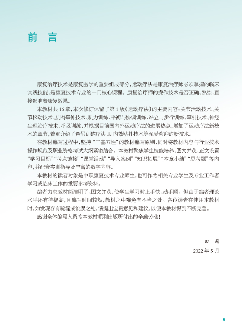 运动疗法 第2版 国家卫生健康委员会十四五规划全国中等卫生职业教育教材 供康复技术专业用 田莉 人民卫生出版社9787117337205