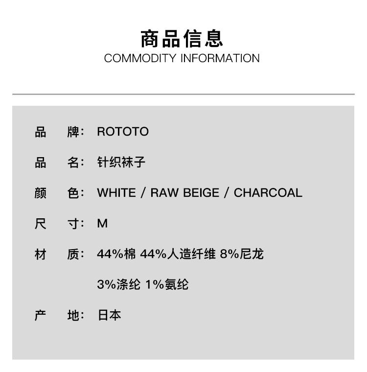 ROTOTO LOOSE PILE CREW SOCKS 日本职人制复古针织袜子 中筒袜
