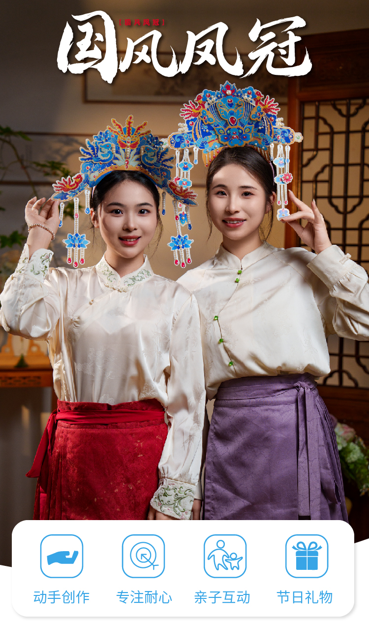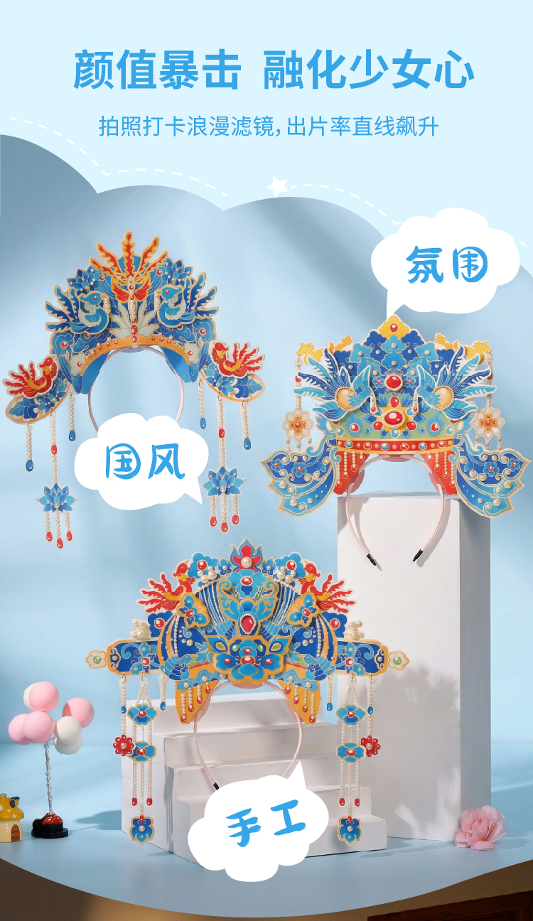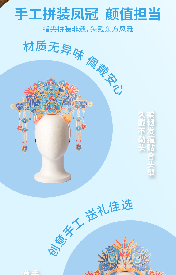 母亲节礼物活动国风凤冠非遗手工diy儿童制作材料幼儿园头饰帽子