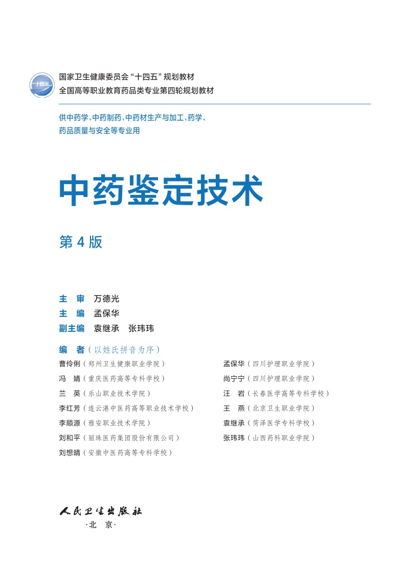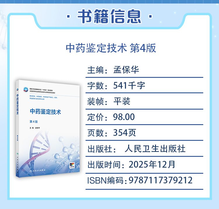 中药鉴定技术 第4四版 十四五规划教材全国高等职业教育药品类专业第四轮规划教材 孟保华 主编 9787117379212 人民卫生出版社