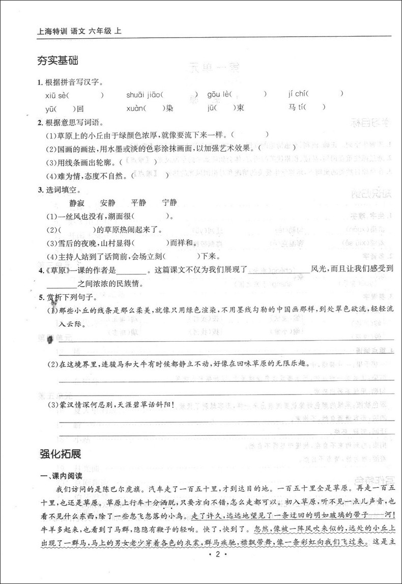 新版 上海特训 语文 六年级第一学期/6年级上册部编版教材配套同步辅导知识点归纳基础强化训练习题单元卷期中期末测试卷