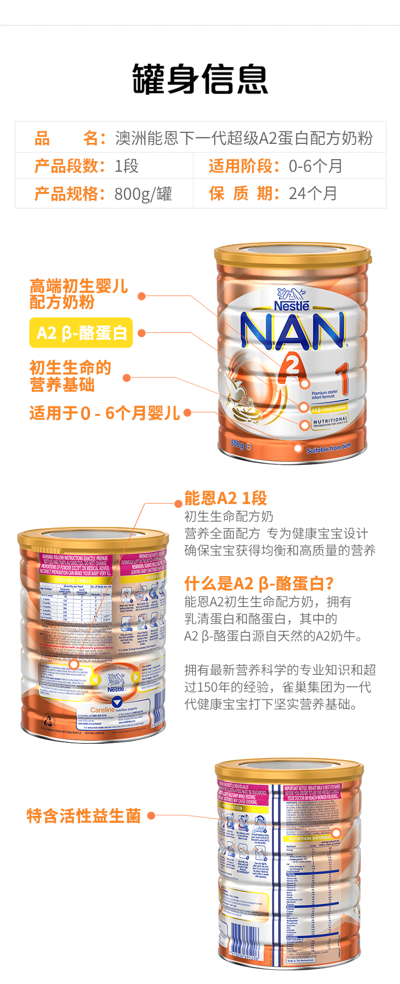 HNMG 澳洲雀巢NAN能恩A2超级蛋白奶粉1段(0-6个月)800g