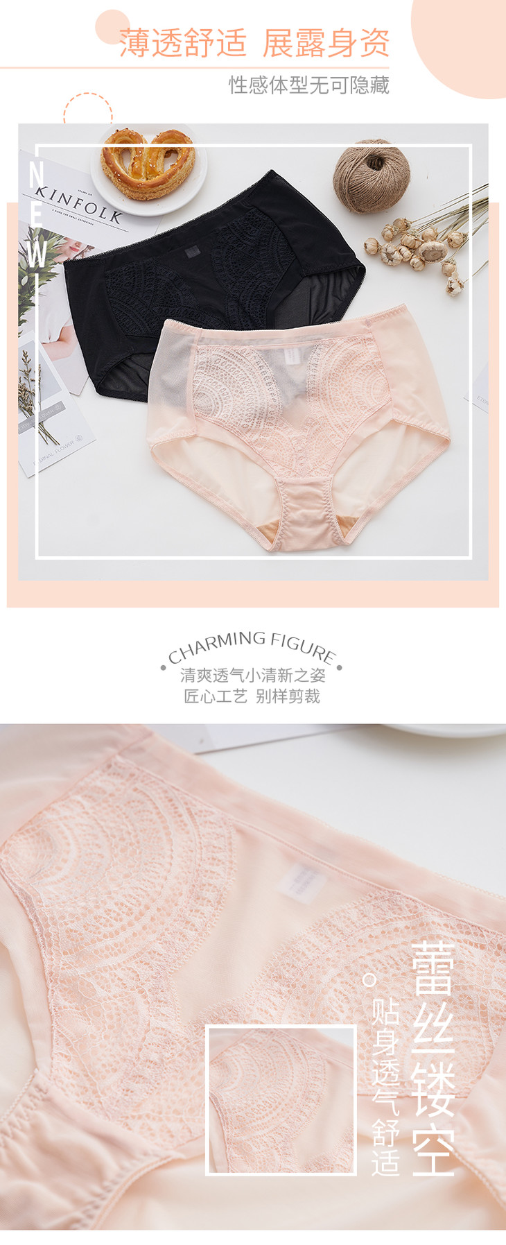 包臀 轻薄蕾丝 底档竹炭纤维 花开彼岸美臀裤