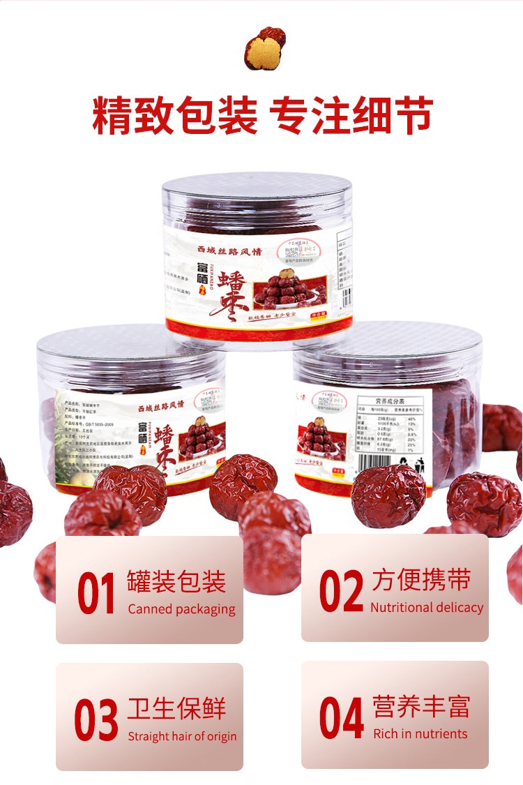 【评测好物】(西域丝路风情)(富硒)特级无农药残留蟠枣干【108克*3罐】(jz-3004)
