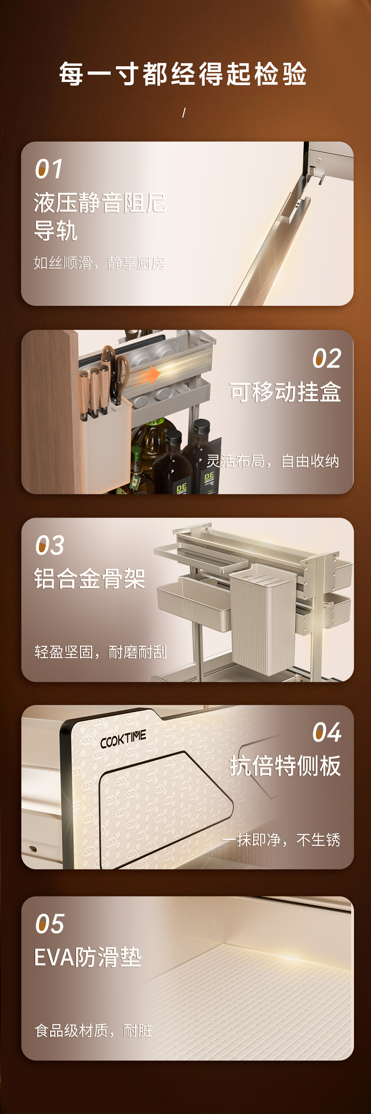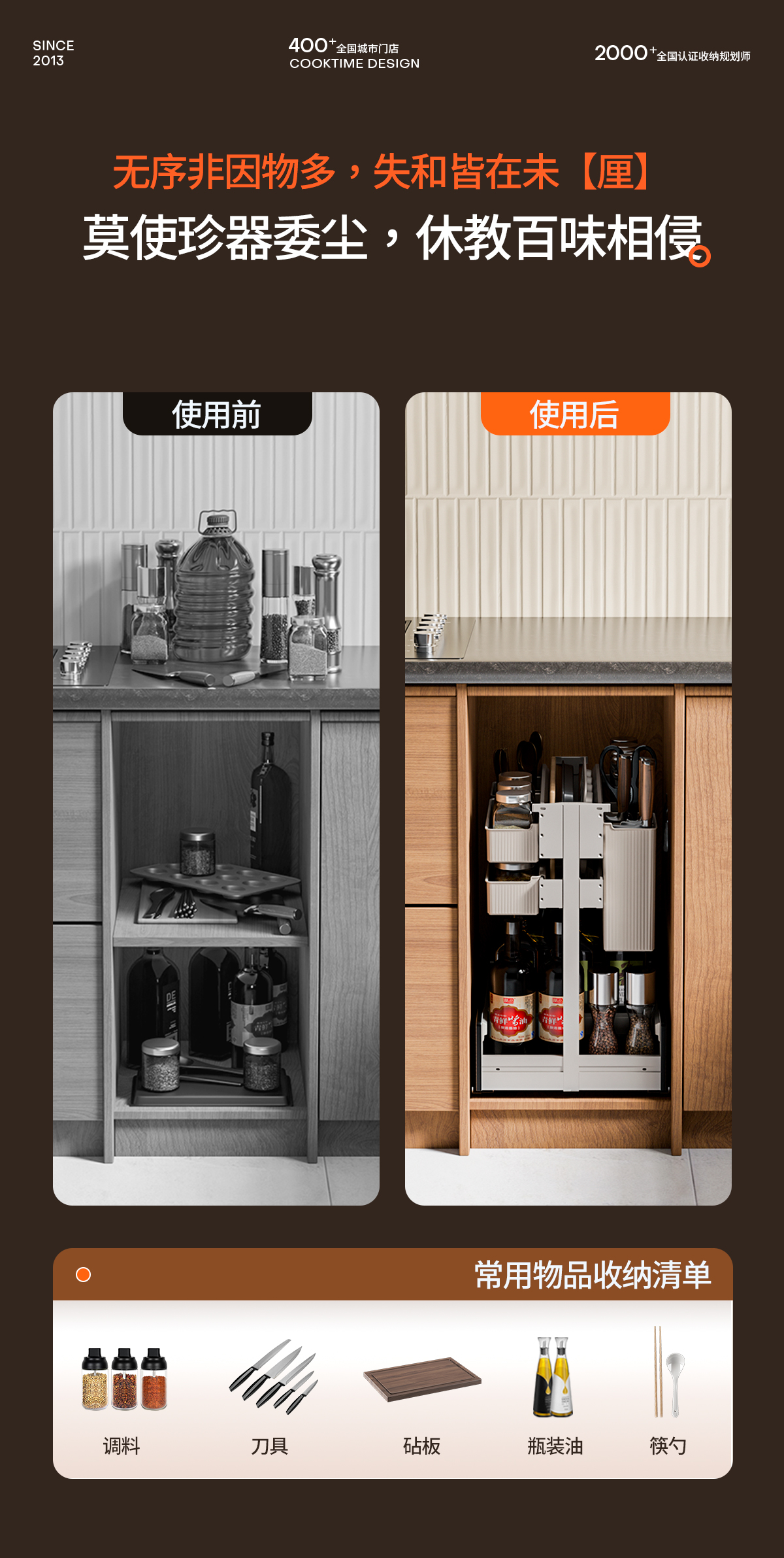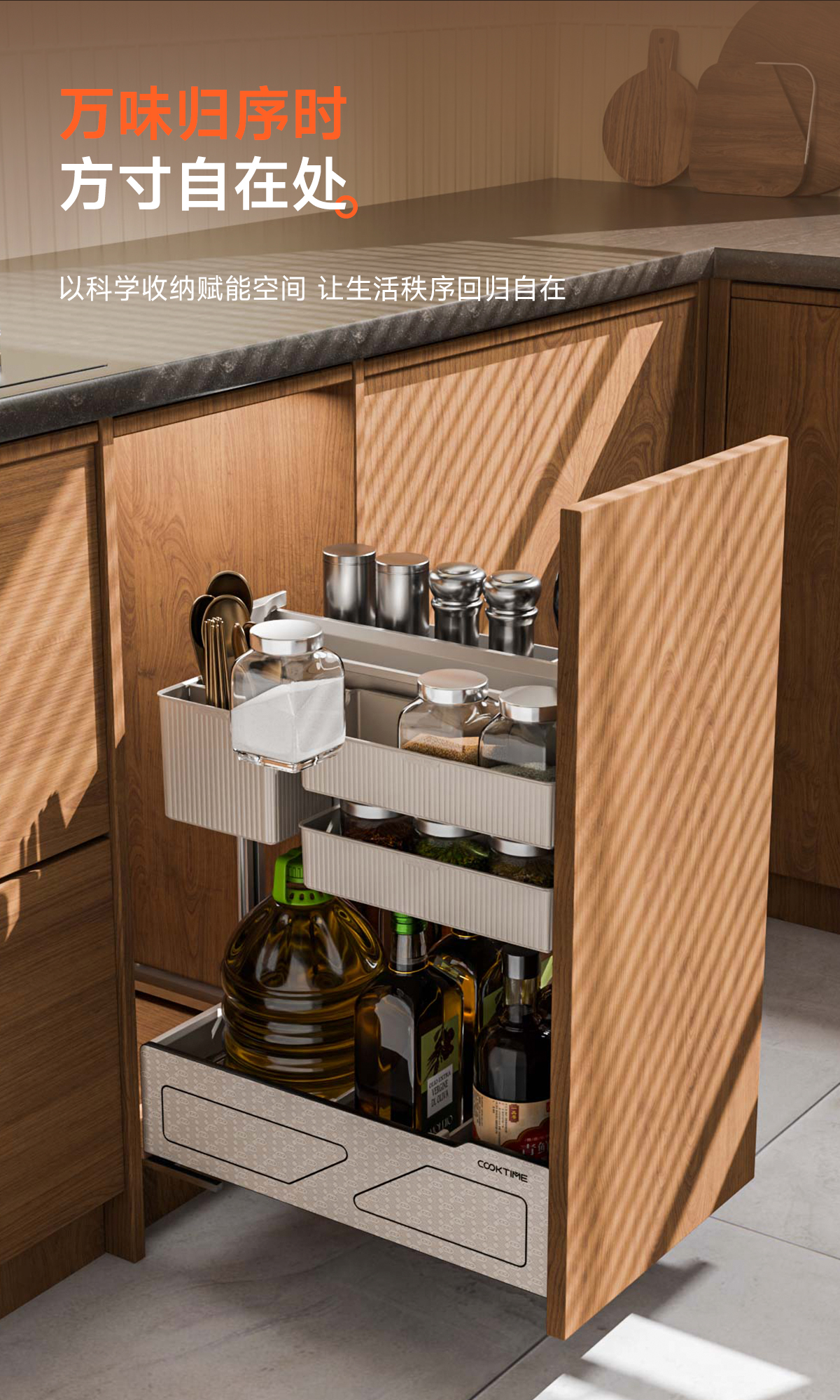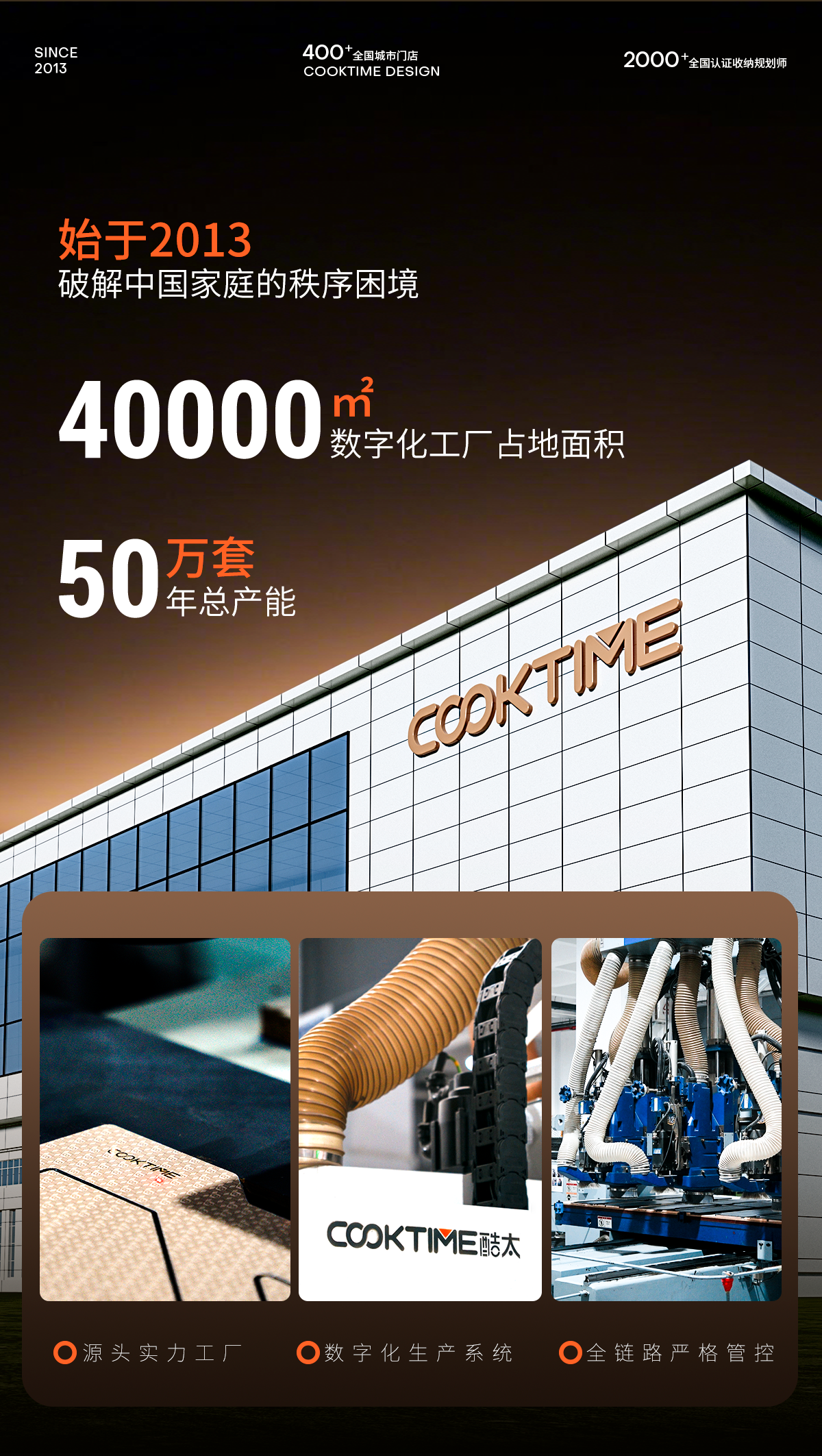 - 酷太坚持8年自主研发,已获得专利证书130项,拥有一套领先市场的厨房收纳系统,为千万中国家庭解决厨房脏乱差,缔造厨房新生活。