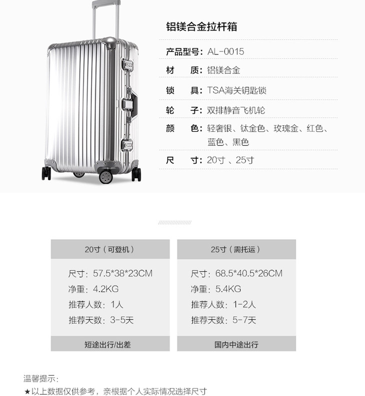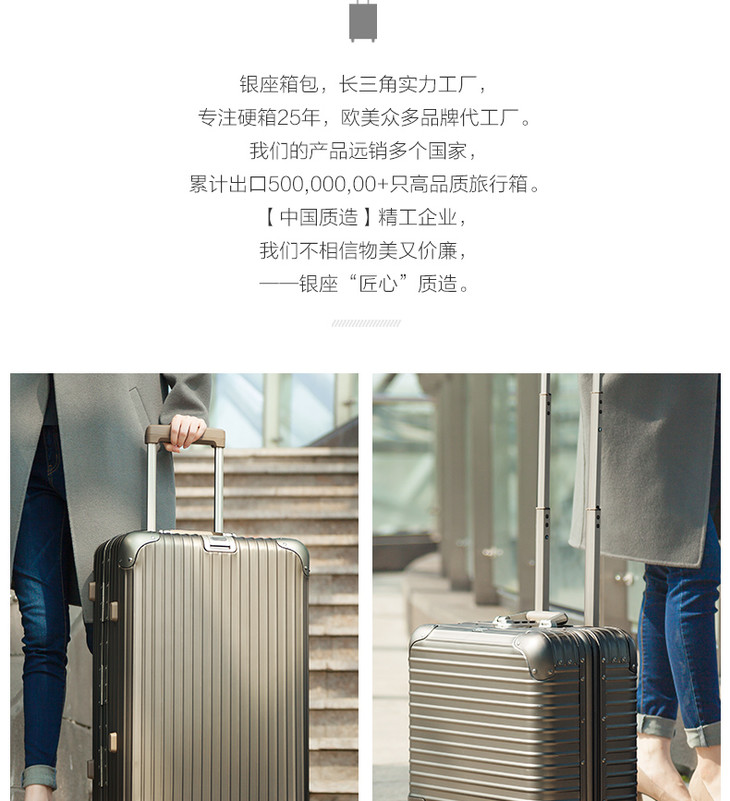 银座全铝镁合金时尚铝框拉杆箱商务金属旅行箱登机行李箱AL-0015