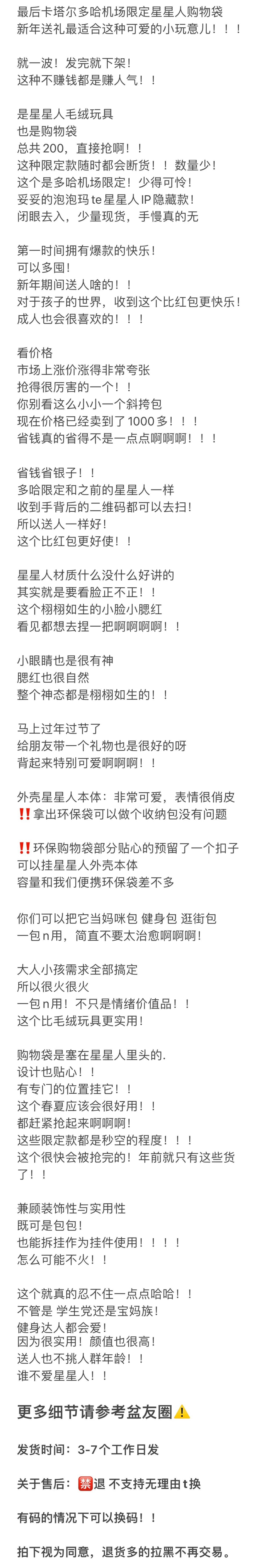 福利款 多哈星星人购物袋 多功能可折叠购物袋 包包挂件