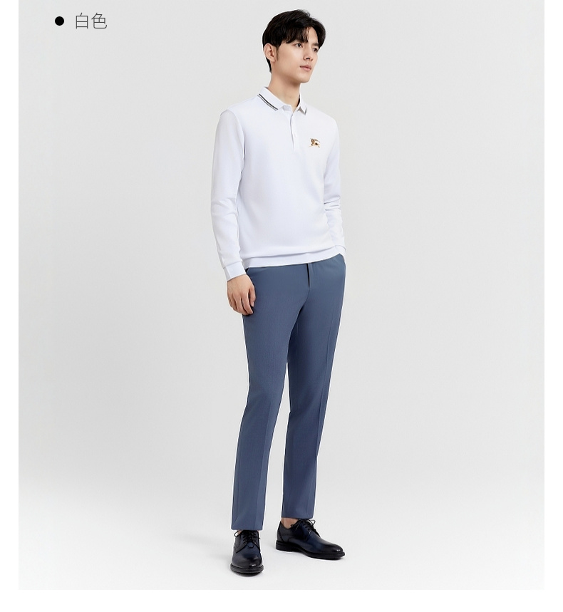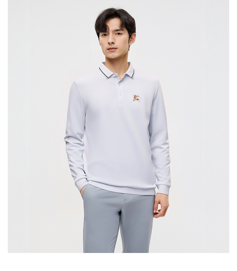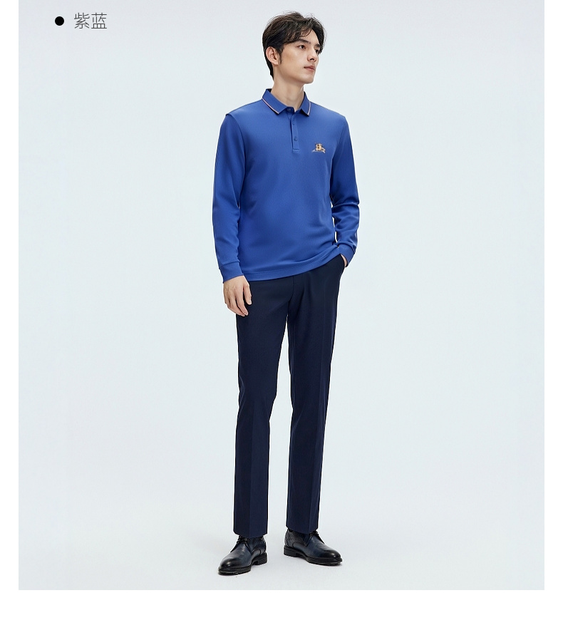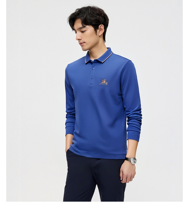 圣得西男士长袖POLO衫春季新款商务休闲通勤印花翻领打底T恤男款2412945073