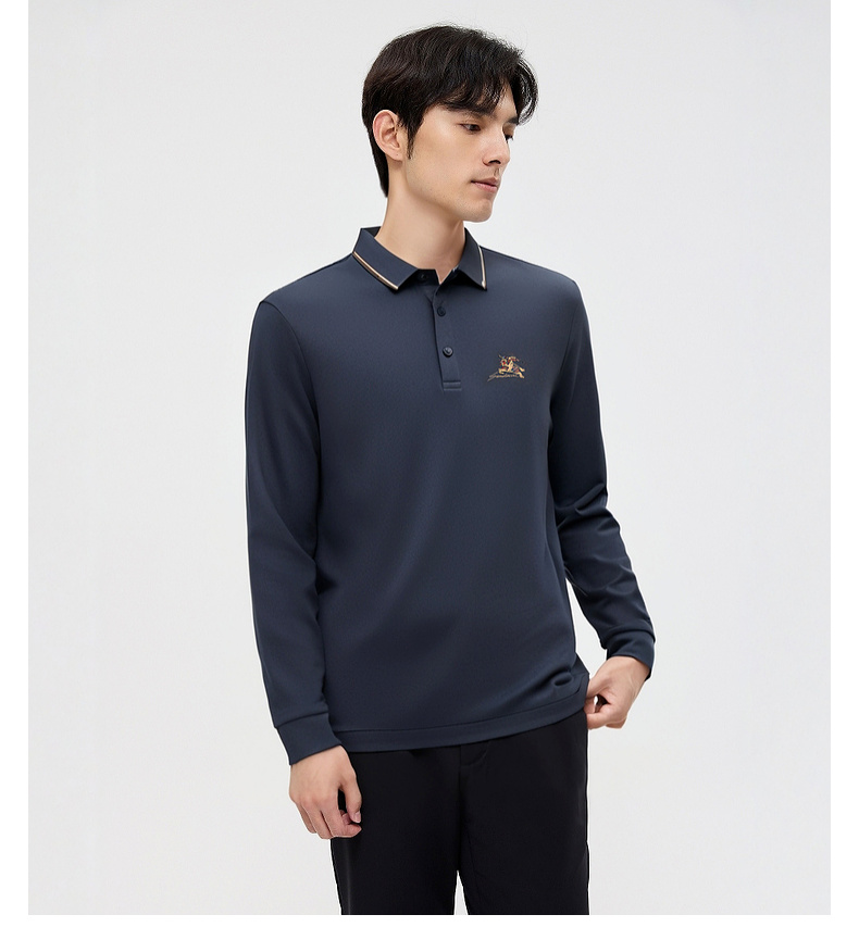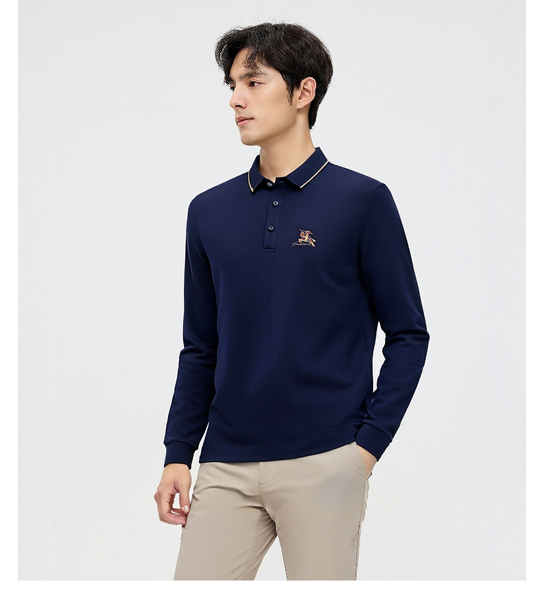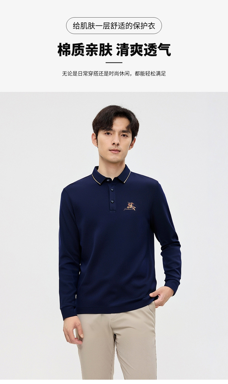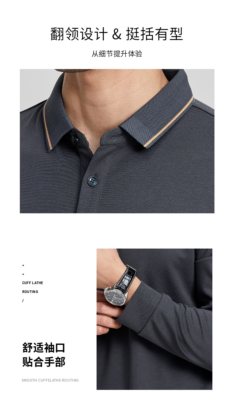 圣得西翻领polo衫男2025秋款纯色休闲打底青中年男士长袖T恤