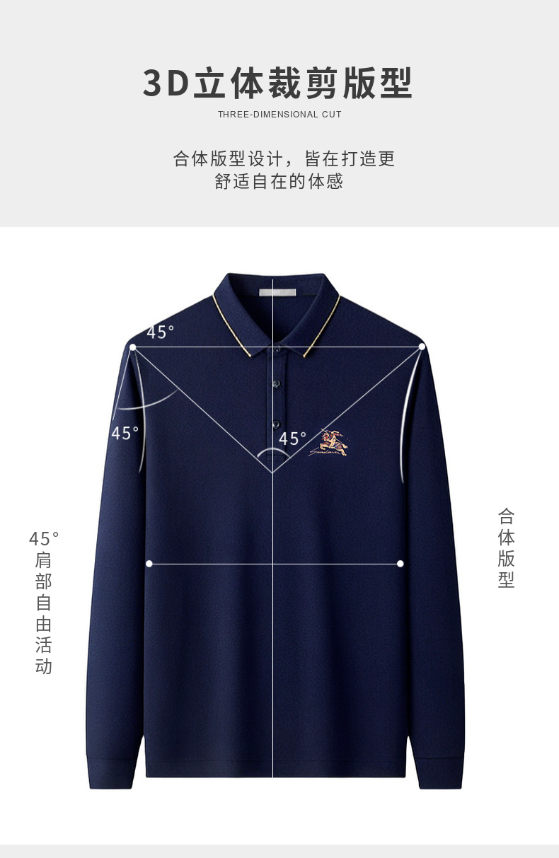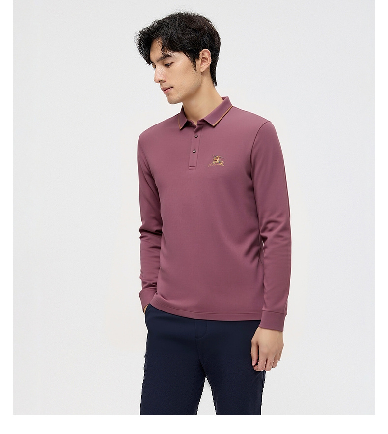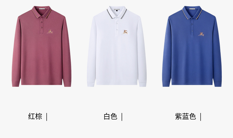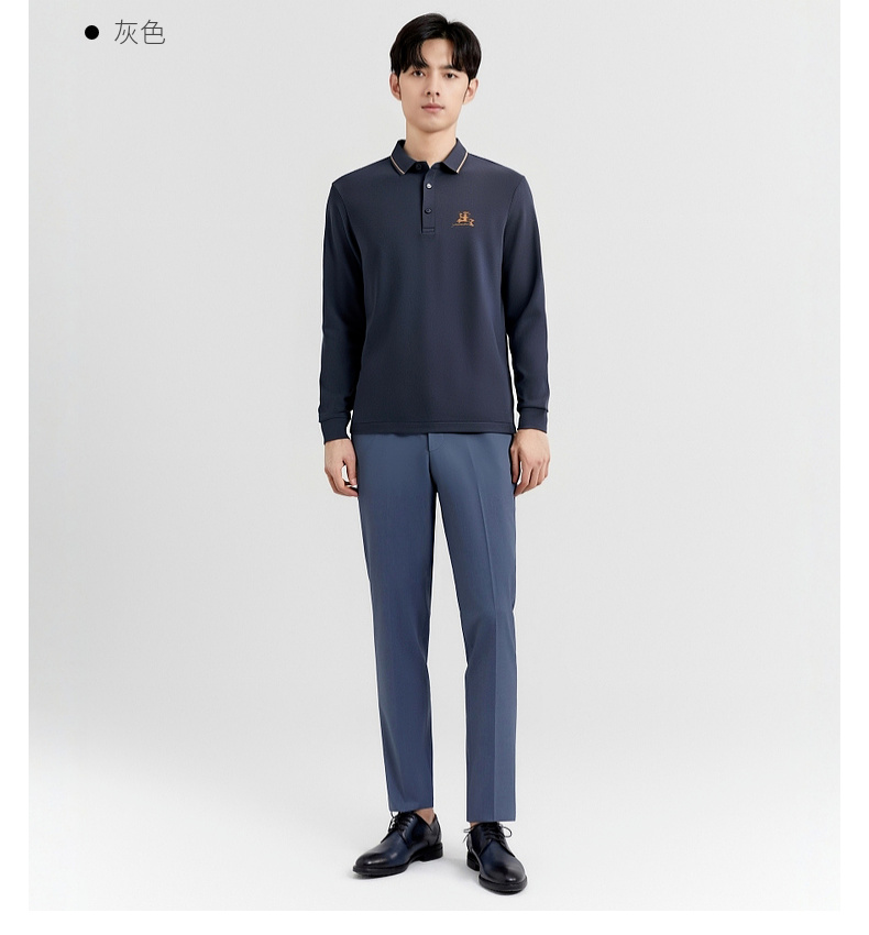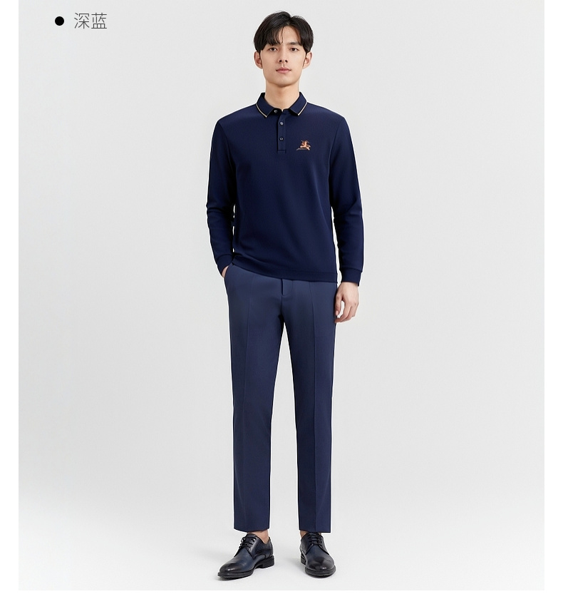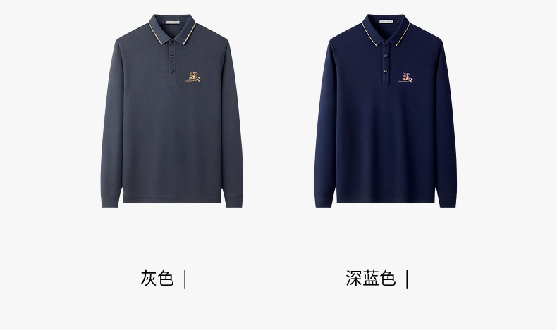 圣得西翻领polo衫男2025秋款纯色休闲打底青中年男士长袖T恤