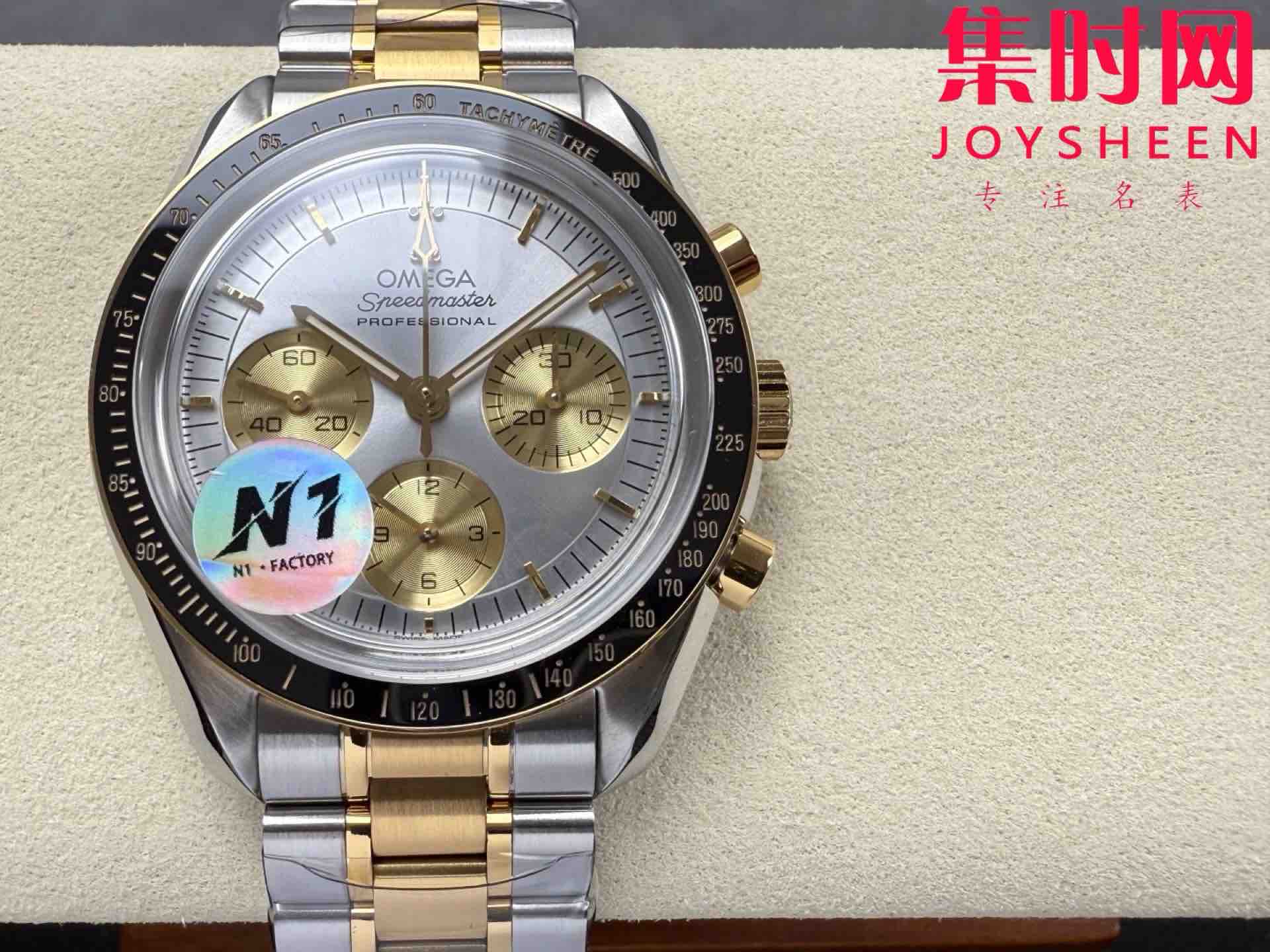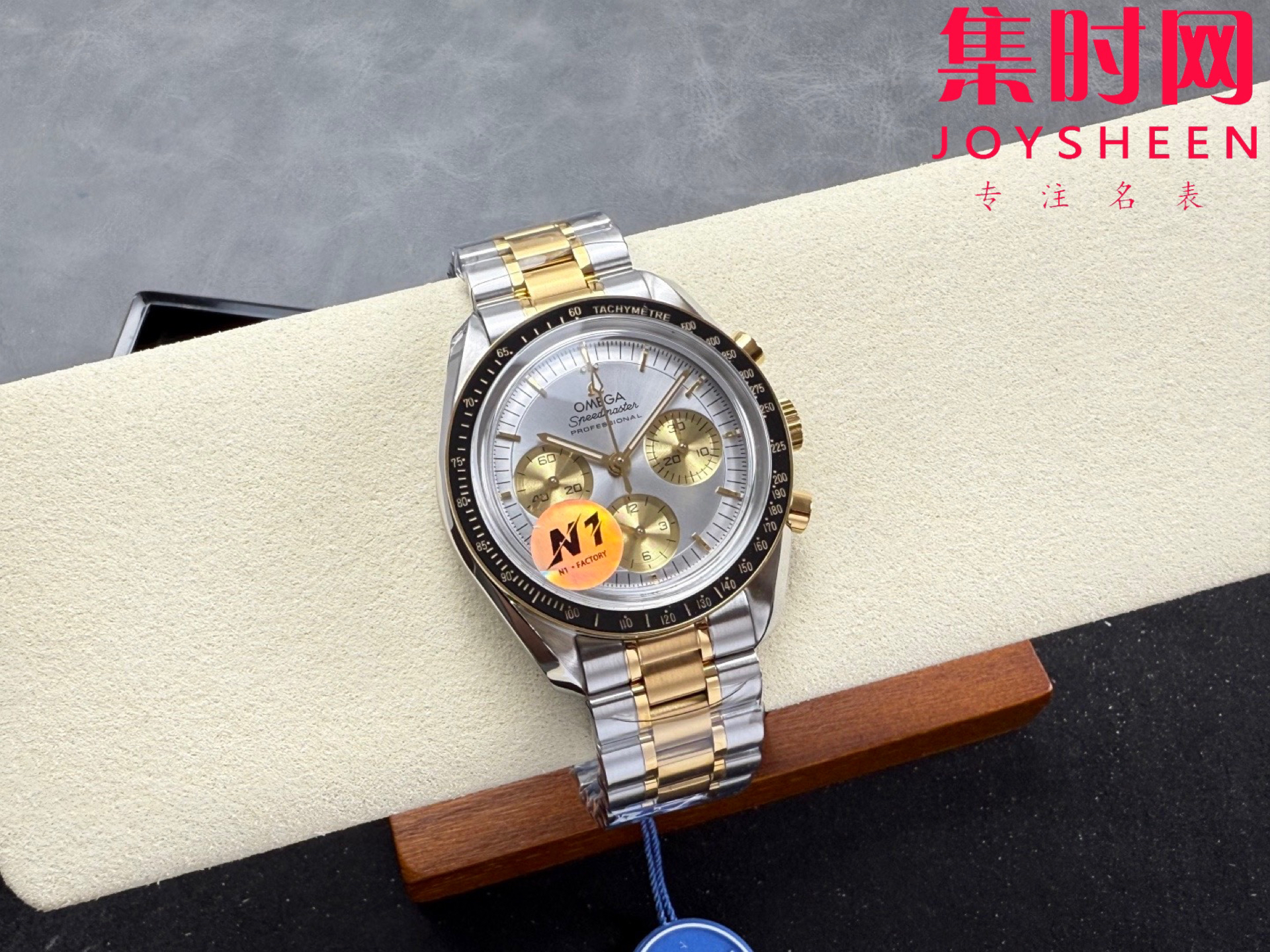 N1欧米茄超霸计时系列 超霸月球表 第四代超霸 间金超霸 定制透底Cal.3861手动上链机械机芯 男士腕表 表径42mm 搭配新款5珠表带,每排五片拱形表节的表链带,佩戴舒适度和质感有更好体验。