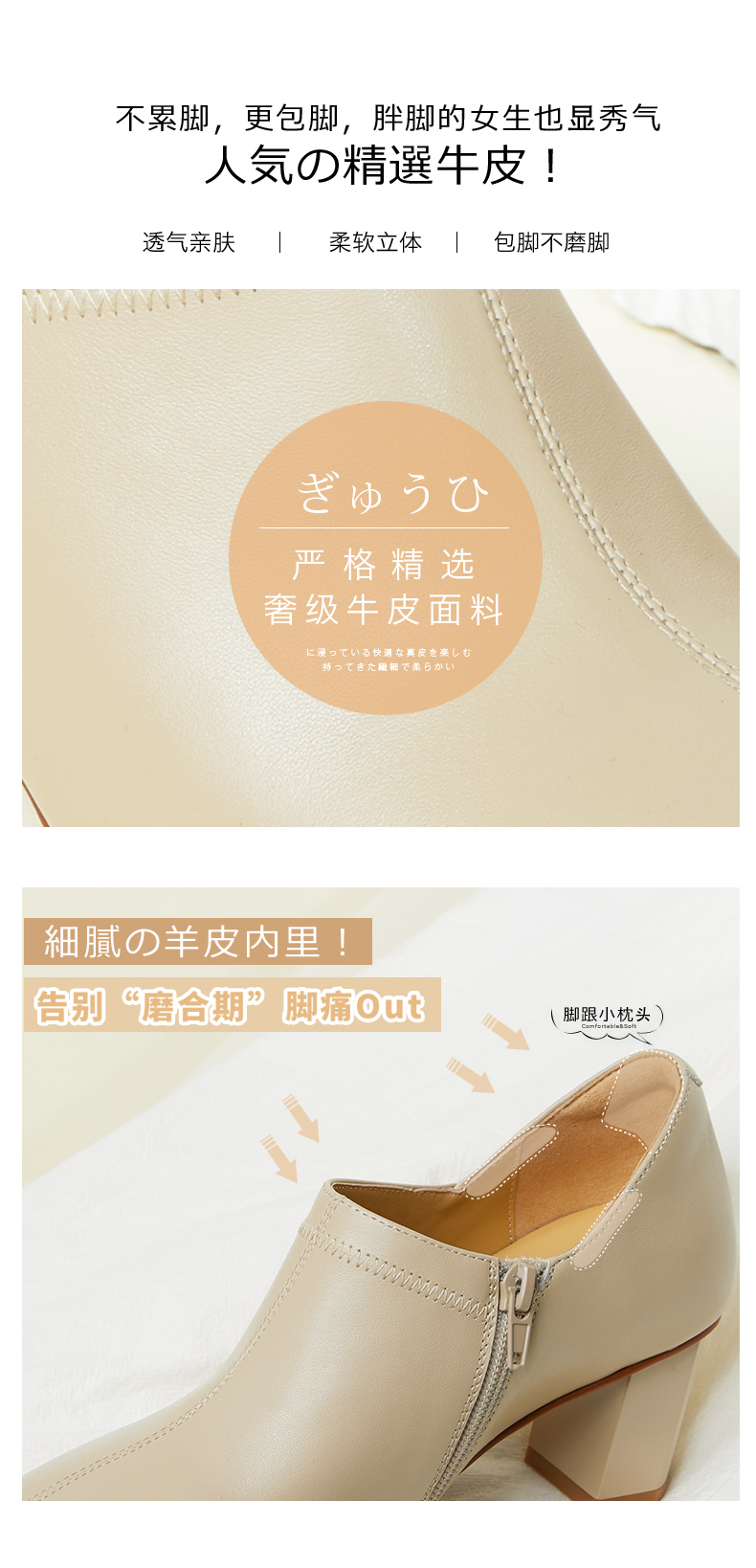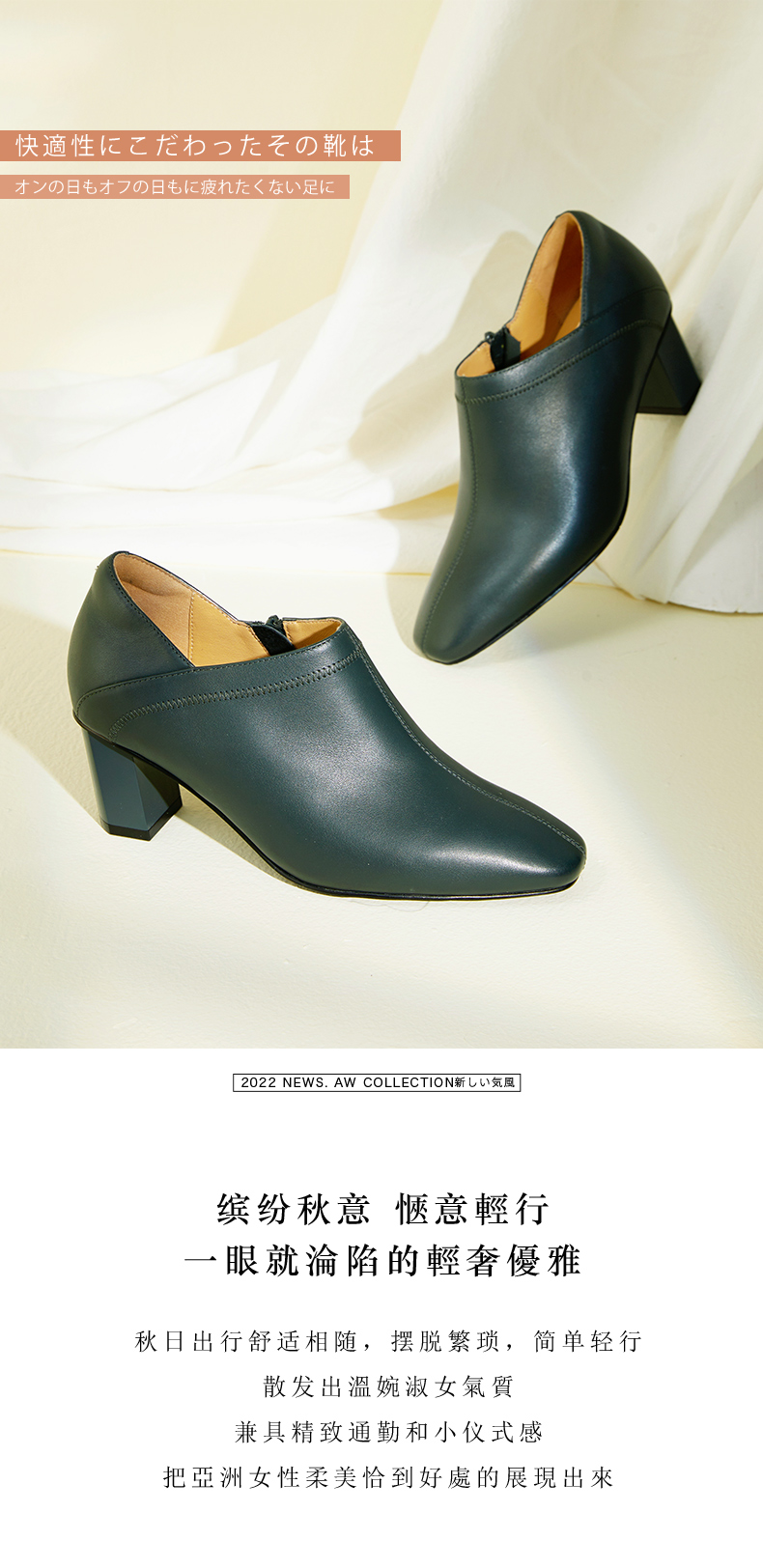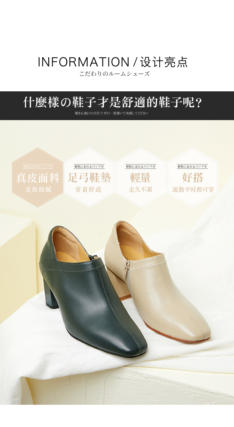 ARCHCONTACT安启美奈柔软粗跟方头女靴