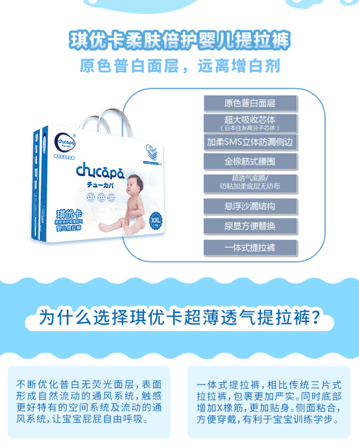 (临期)琪优卡(chucapa)拉拉裤 柔肤倍护超薄透气婴儿提拉裤 XXL号