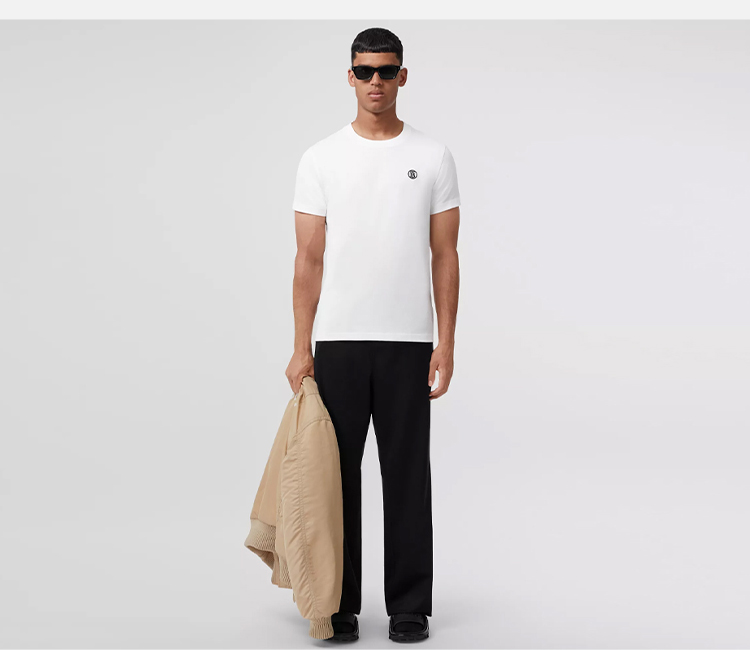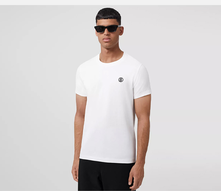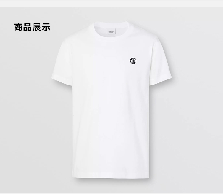 【一】BURBERRY 巴宝莉 男士棉质 Monogram TB专属标识刺绣圆领短袖T恤 白色 8053422 A1464