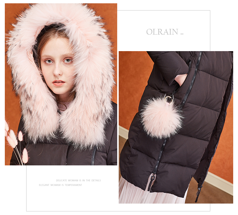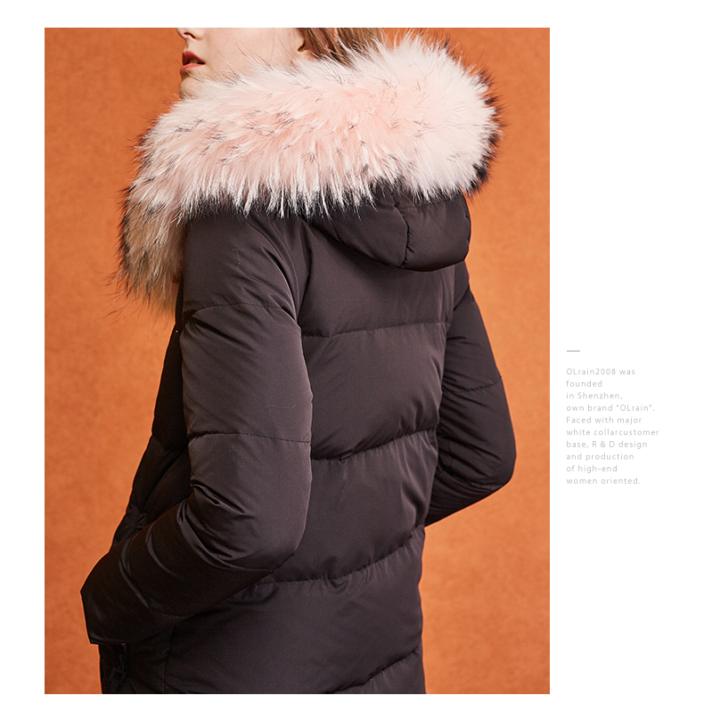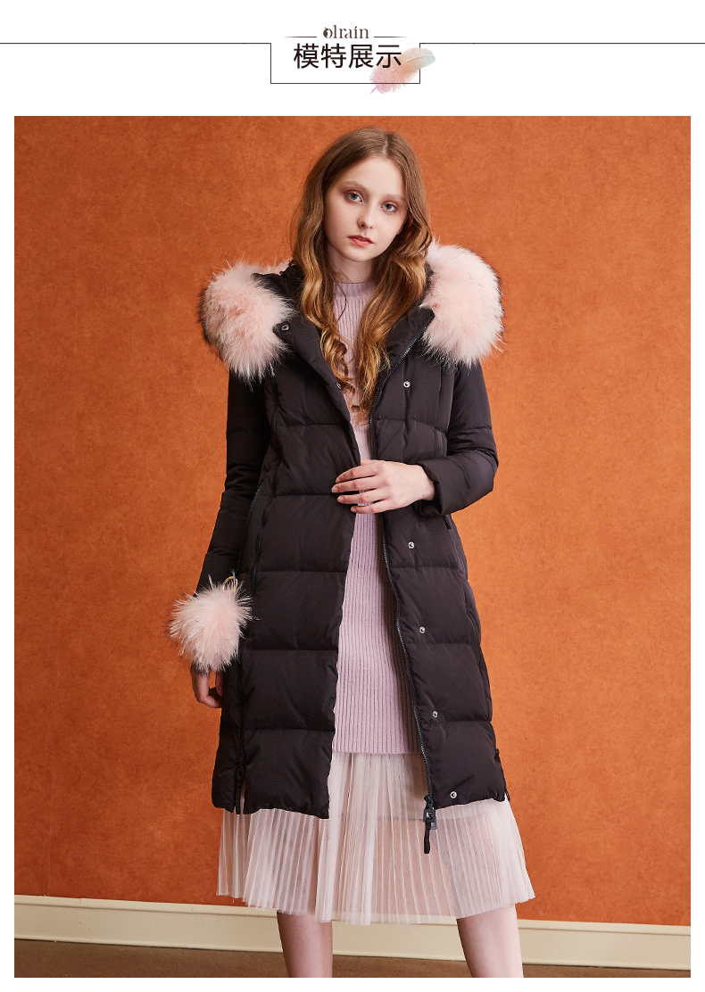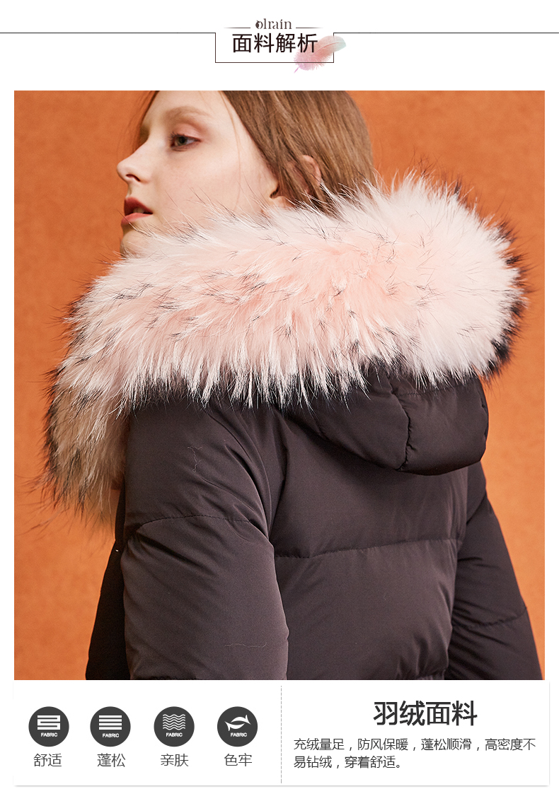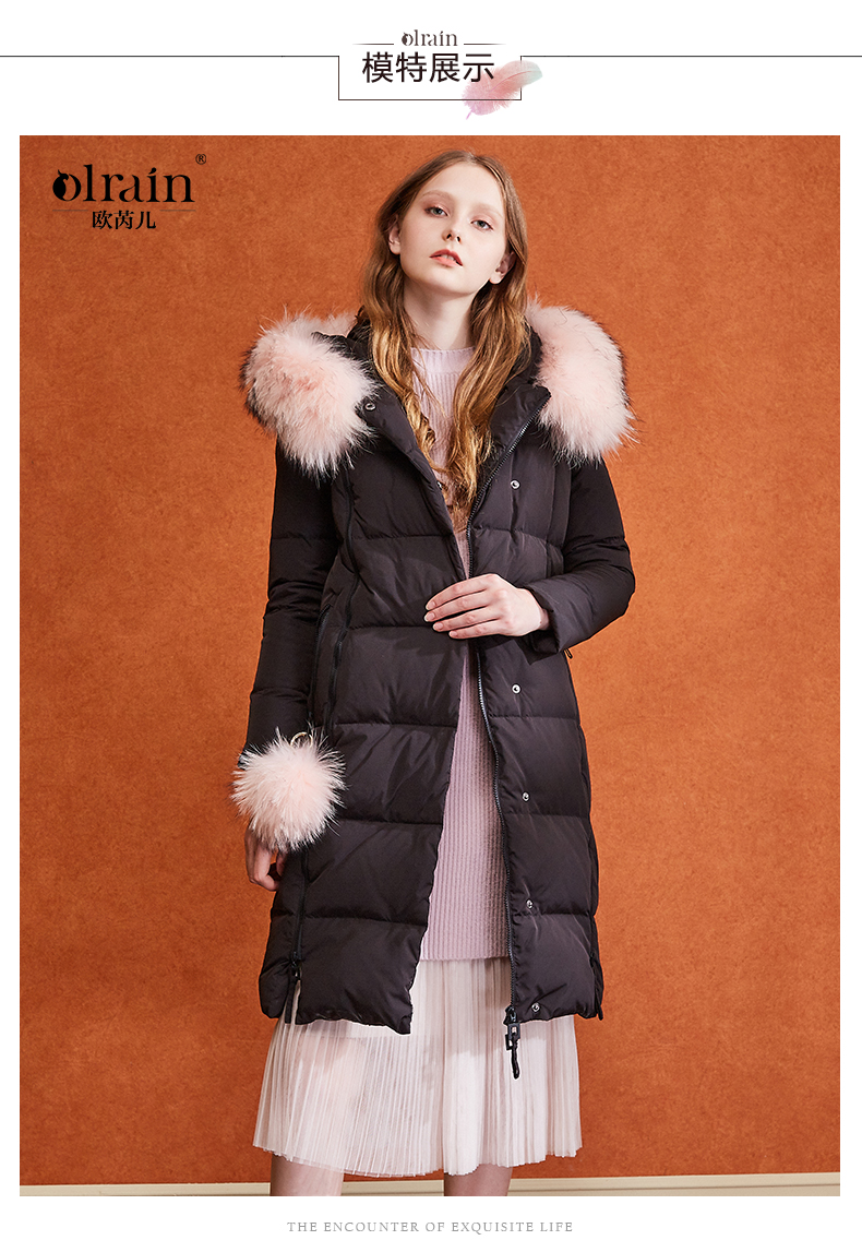 欧芮儿2018冬 羽绒服女中长款貉子毛领韩版连帽加厚外套