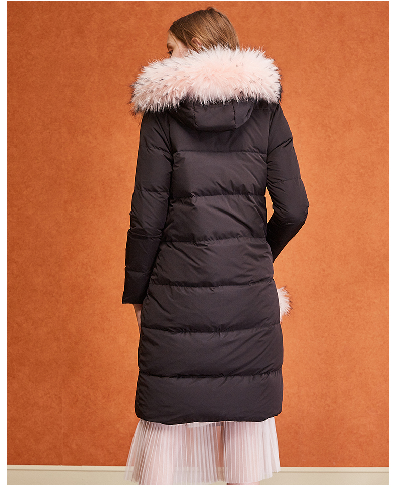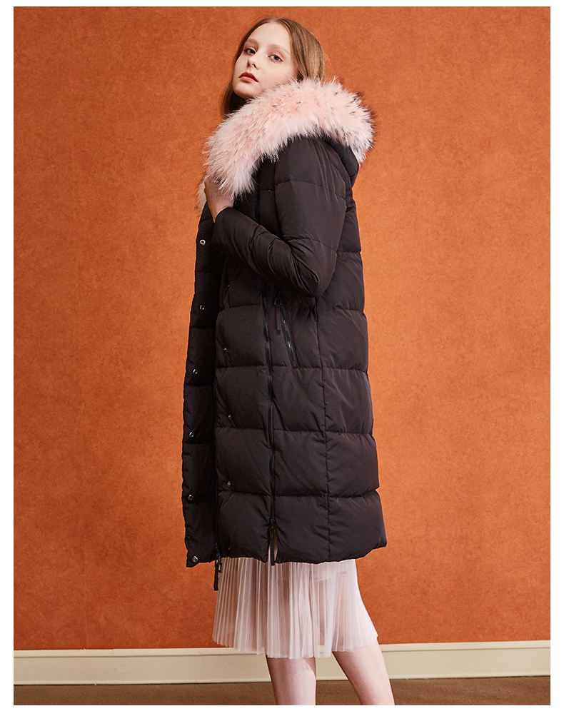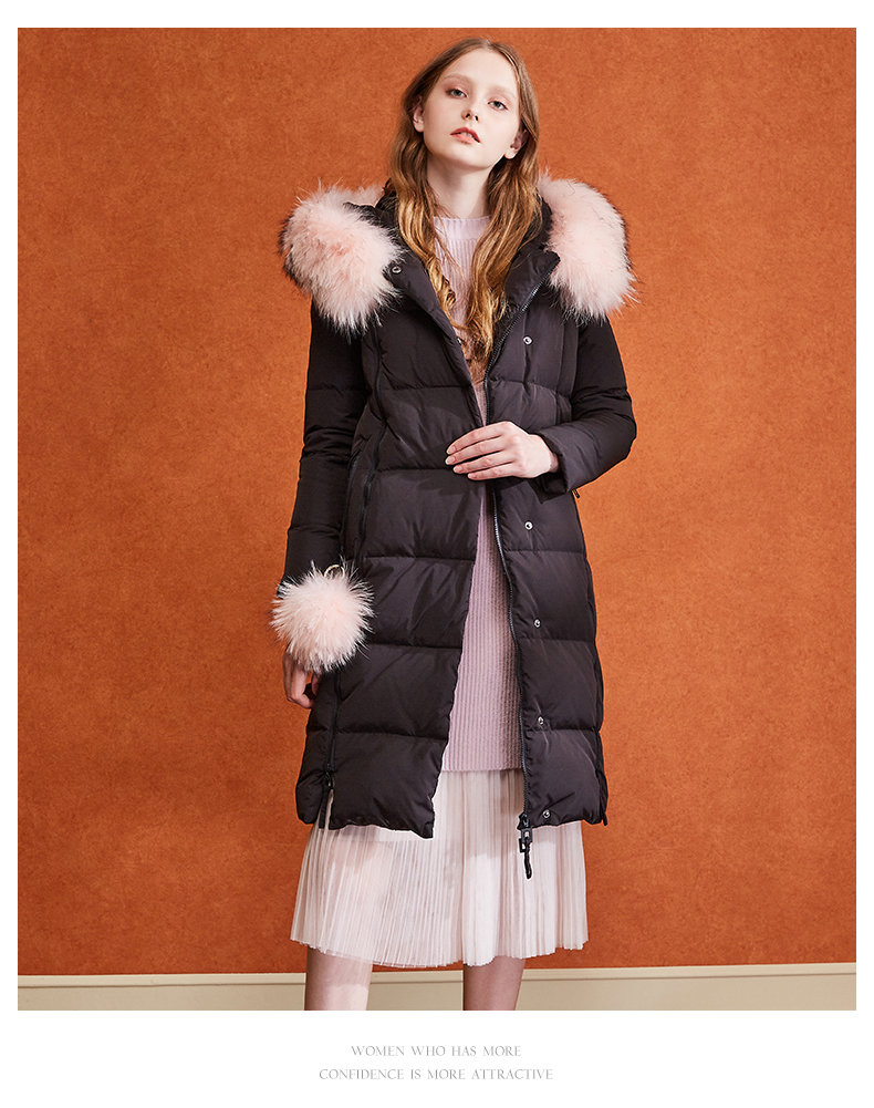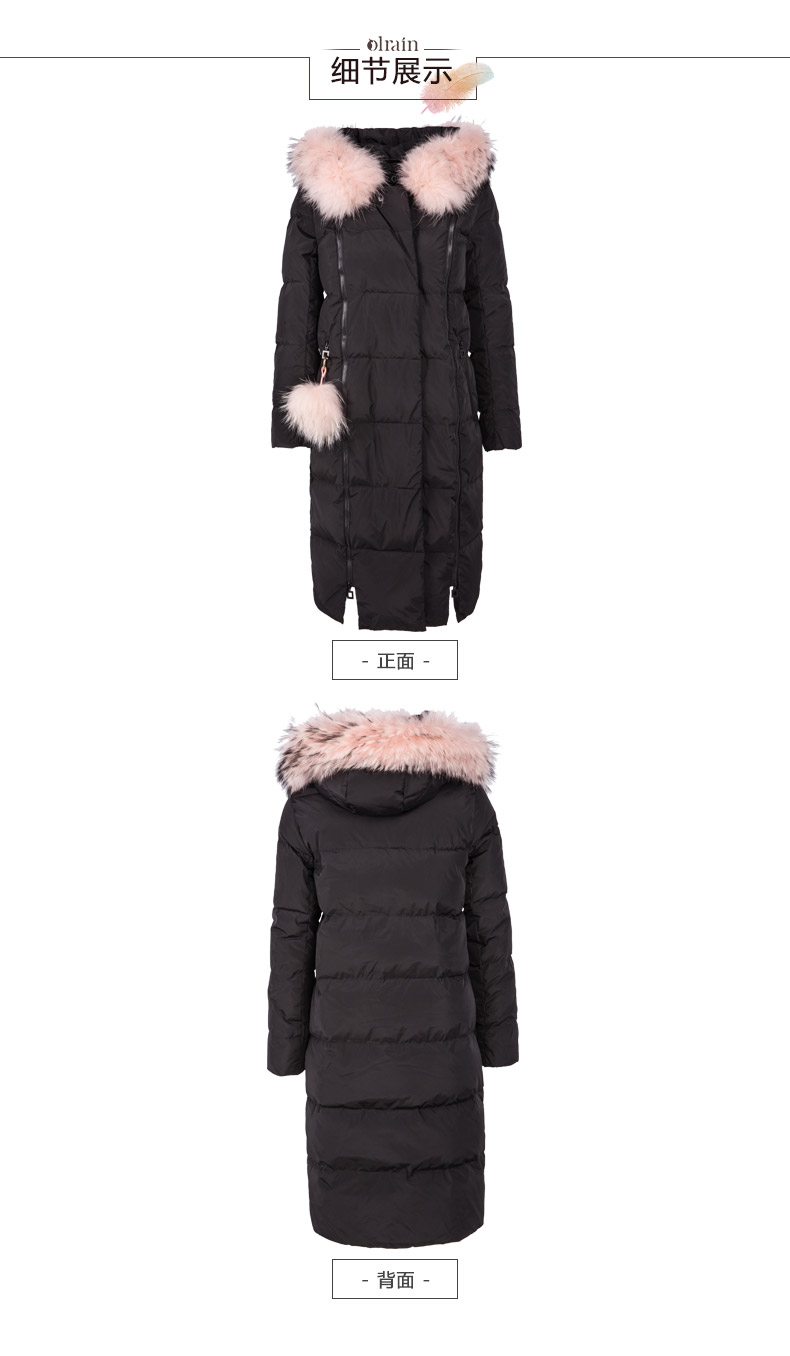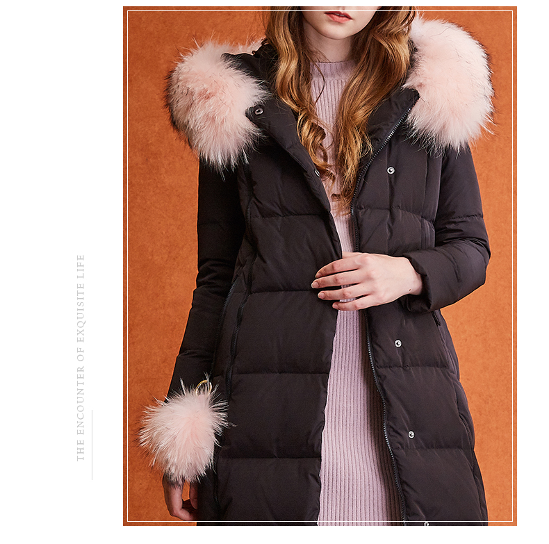 欧芮儿2018冬 羽绒服女中长款貉子毛领韩版连帽加厚外套