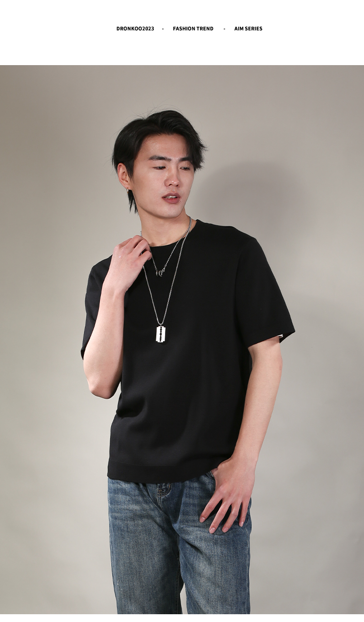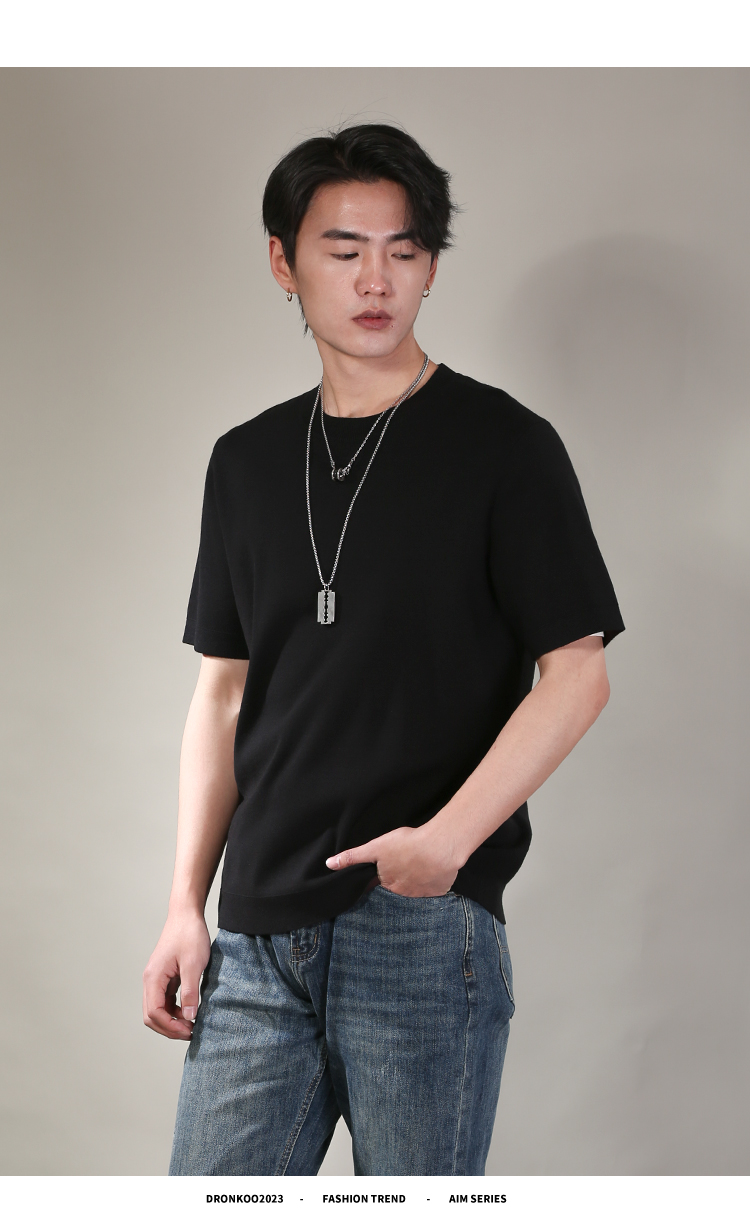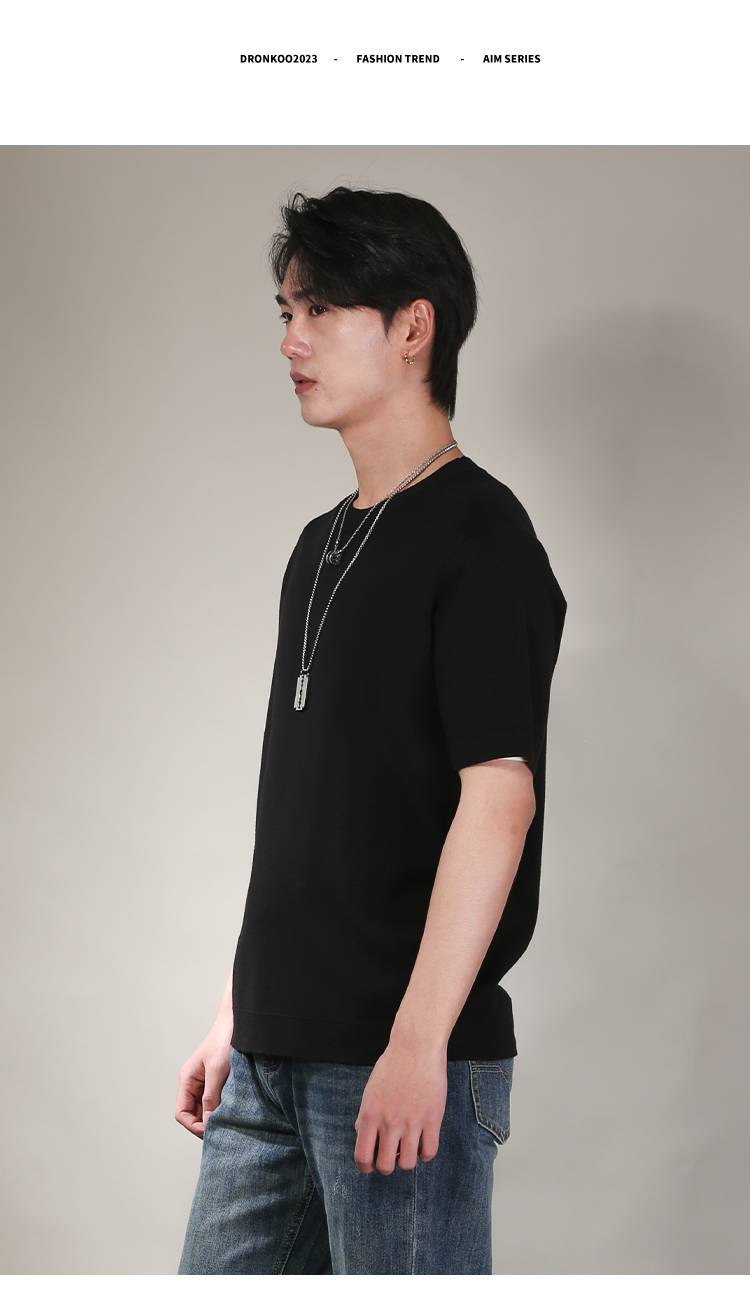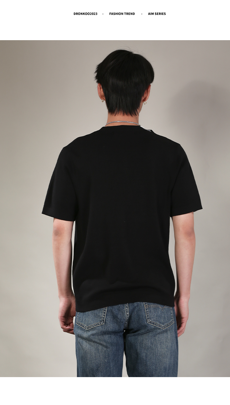 DRONKOO 2026 圆领领口下摆里边撞色净版修身短袖薄毛衣