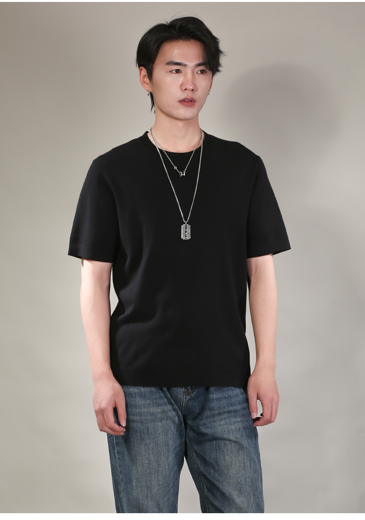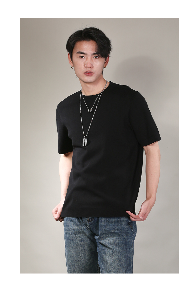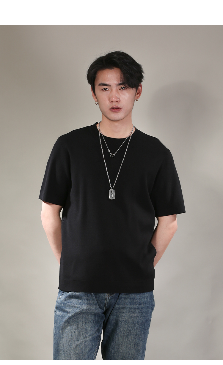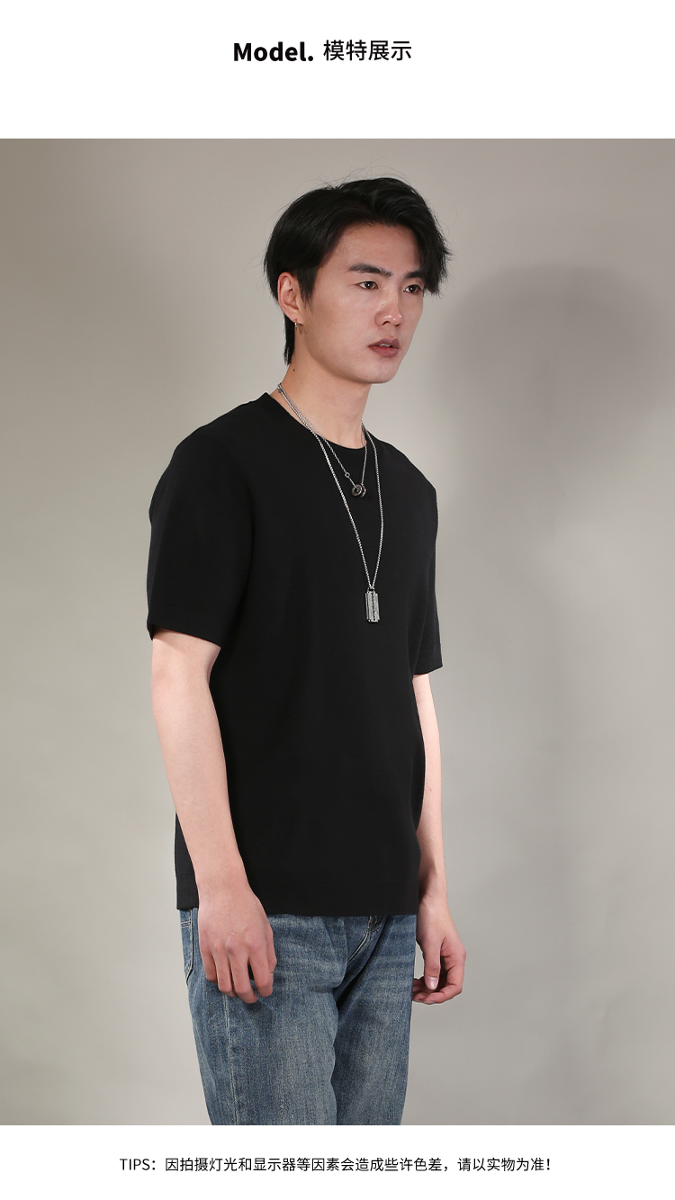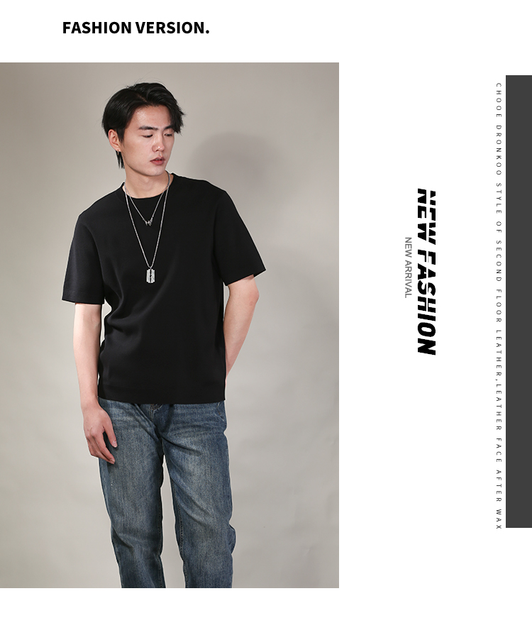 DRONKOO 2026 圆领领口下摆里边撞色净版修身短袖薄毛衣