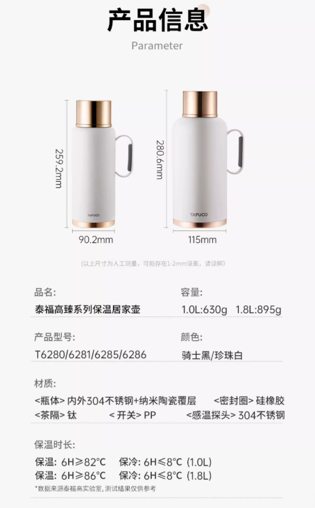 泰福高臻系列保温居家壶1000mlT6280/6281