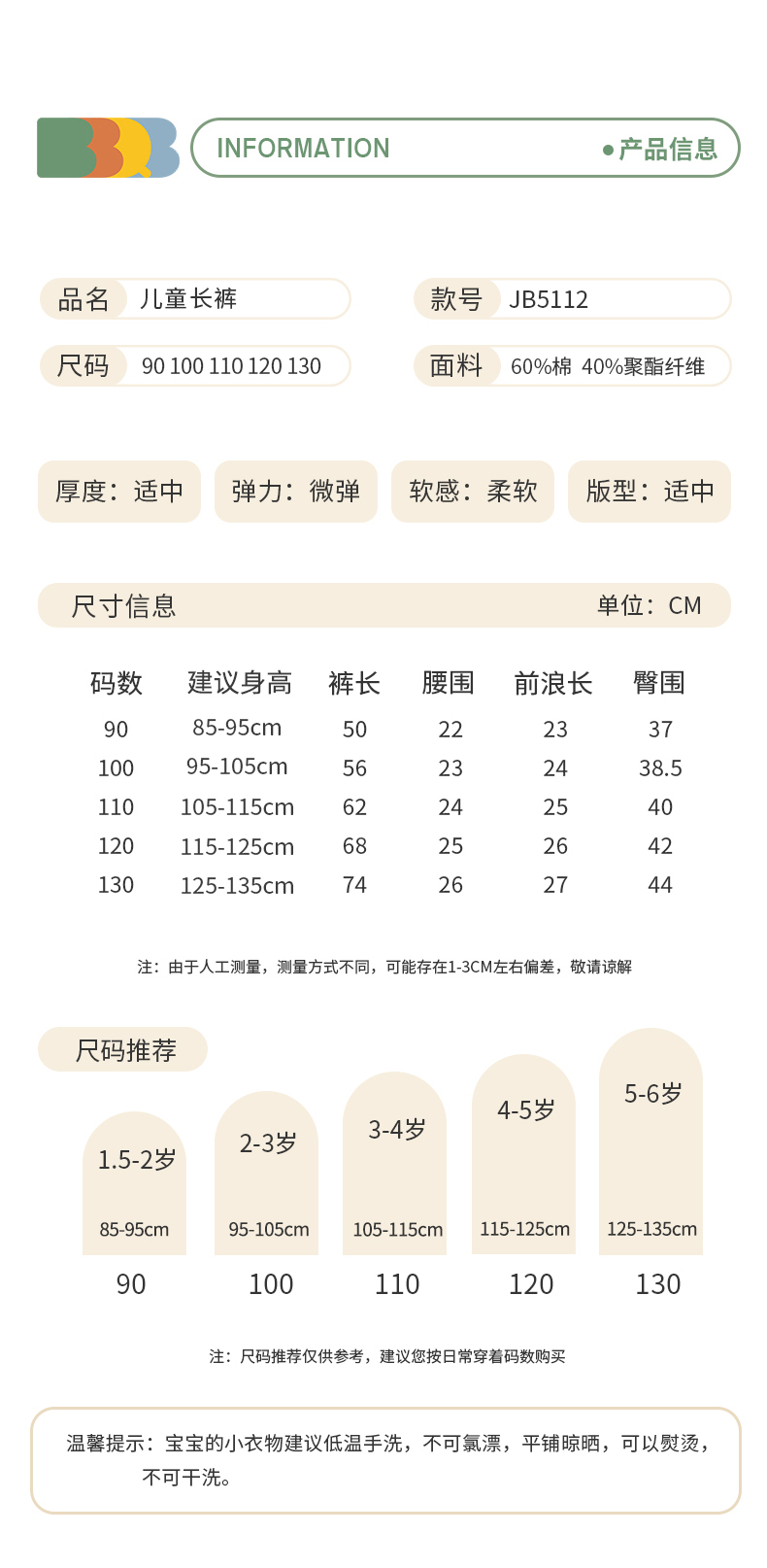 minizone-BBQB儿童裤子春装新品男童裤子纯色运动裤女童休闲裤宝宝长裤童装JB5112