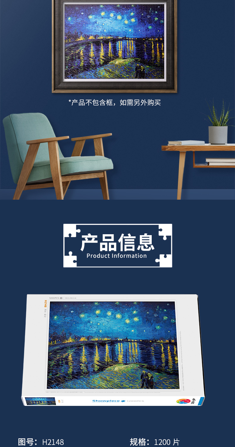 【折扣商品 不退不换】1200片 平面拼图 塑料拼图 H2148 梵谷-星空