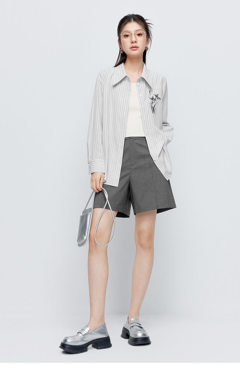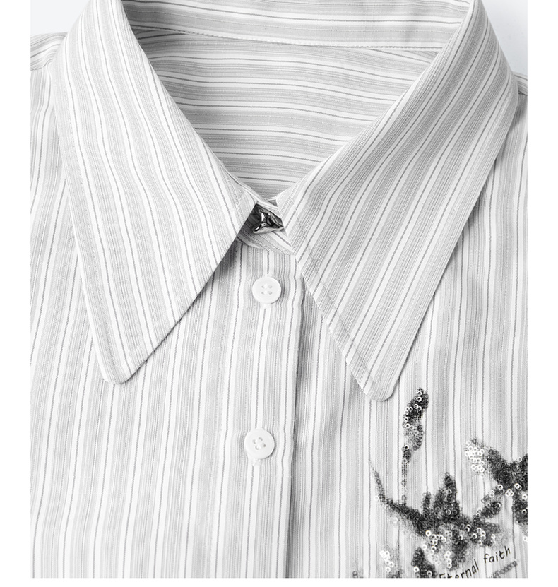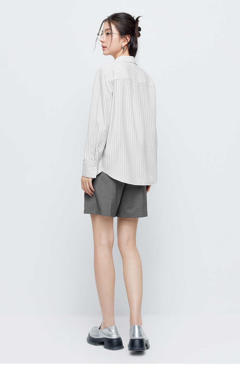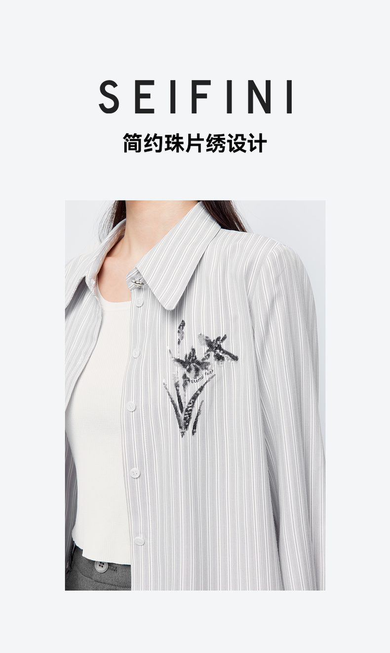 【积分换购不退货】【特惠不退货】诗凡黎条纹翻领衬衫2024夏新款衬衣女3F4320961