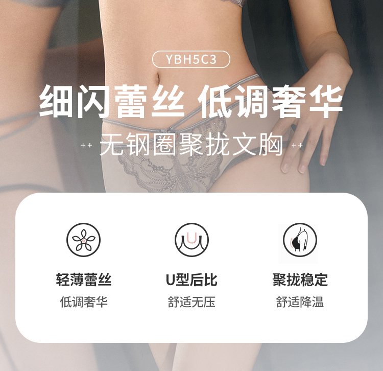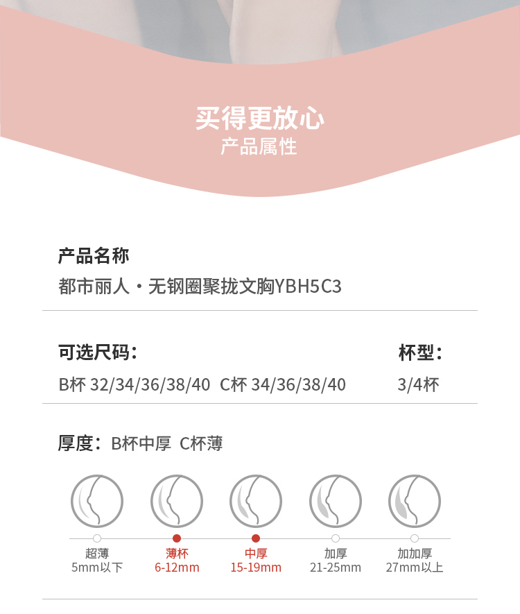 都市丽人内衣B:中厚C:薄蕾丝聚拢升杯无钢圈常规文胸YBH5C3