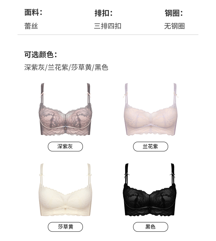 都市丽人内衣聚拢升杯A:加厚B:薄蕾丝四排扣树脂胶圈3/4杯文胸LB11K9