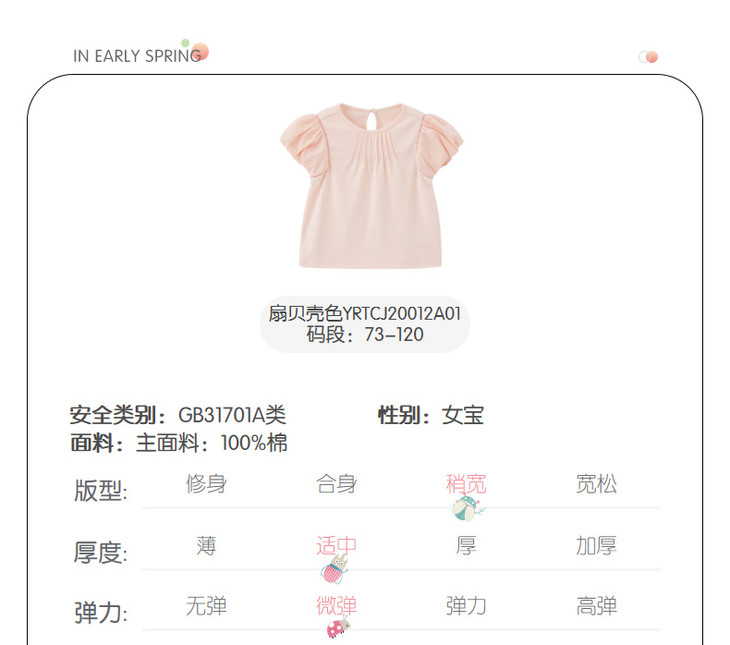 英氏-童衣类(夏)D0英针圆领短套衣 扇贝壳色