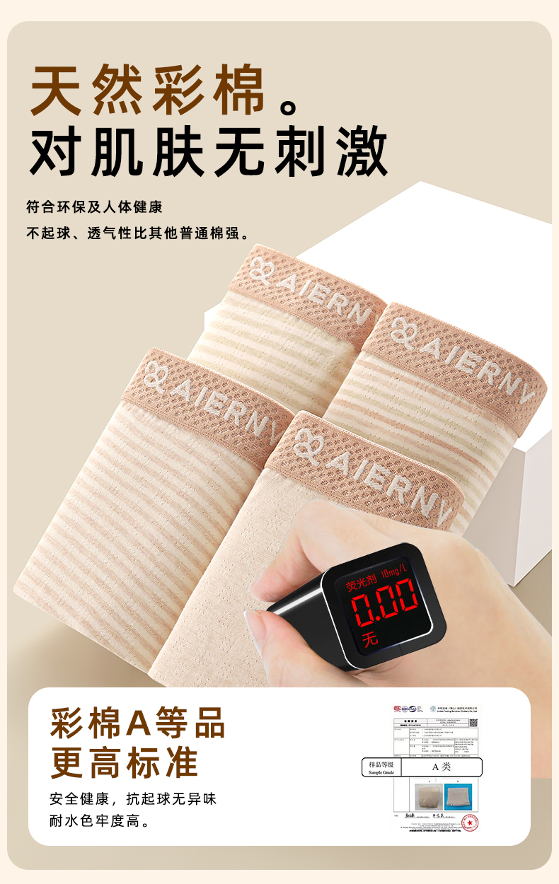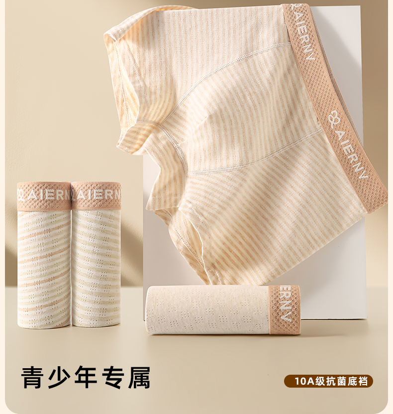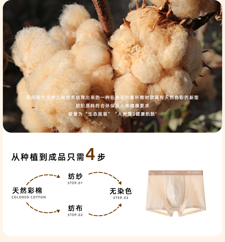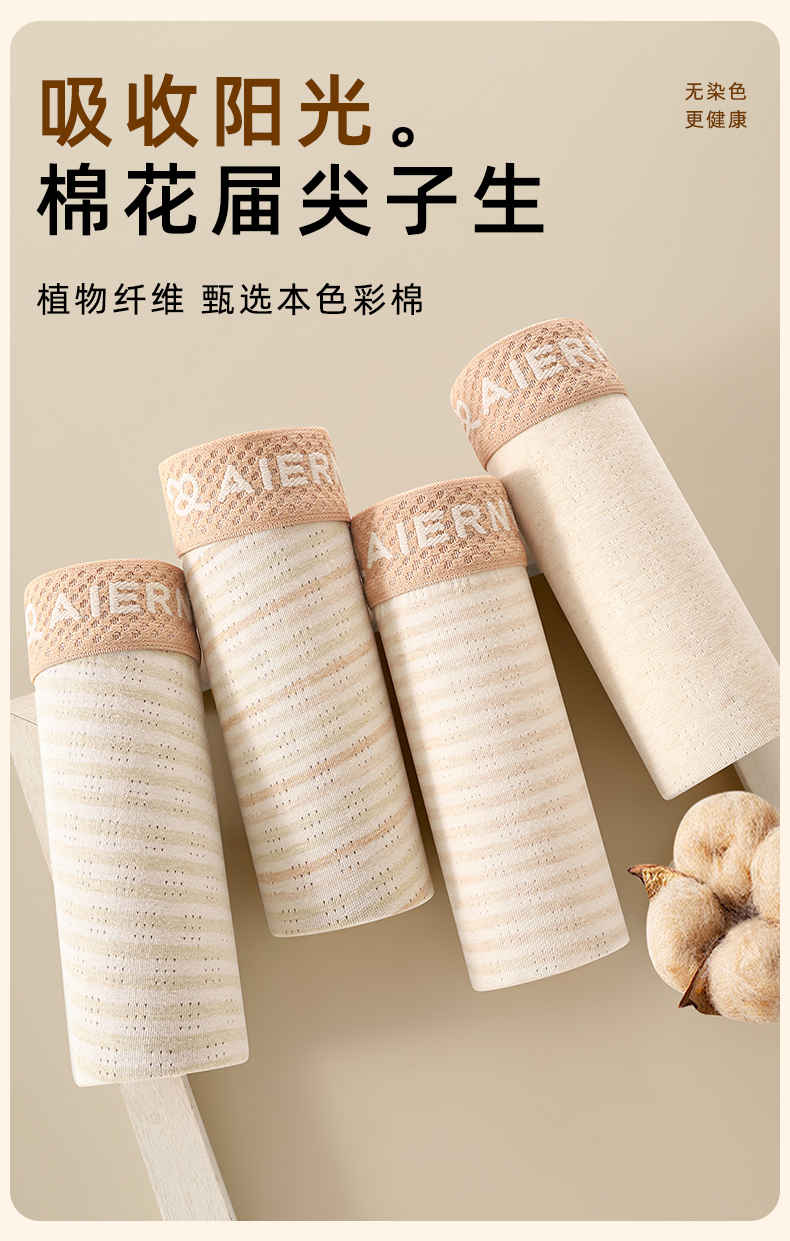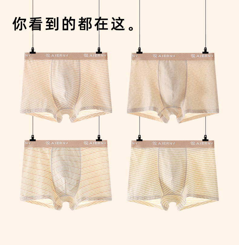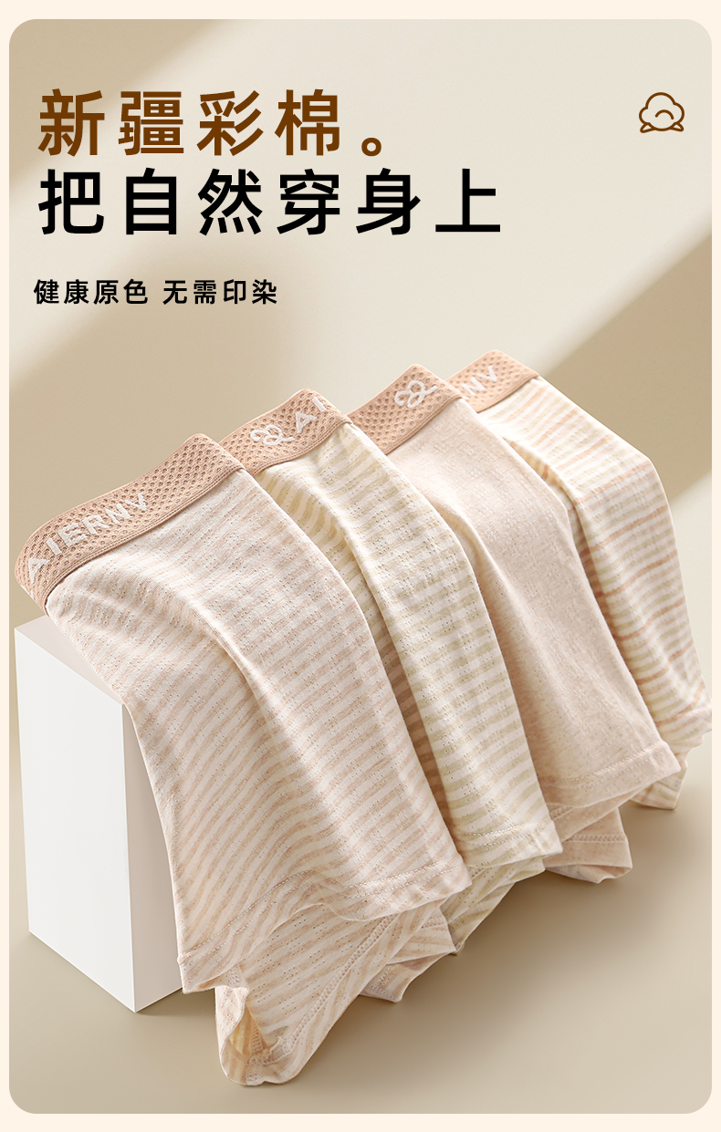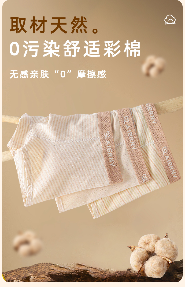 老米优品🎈春节不打烊!【4条装】10A抗菌,《青少年A类彩棉发育期内裤》男孩儿童发育期纯棉短裤1,天然彩棉透气平角裤 ~