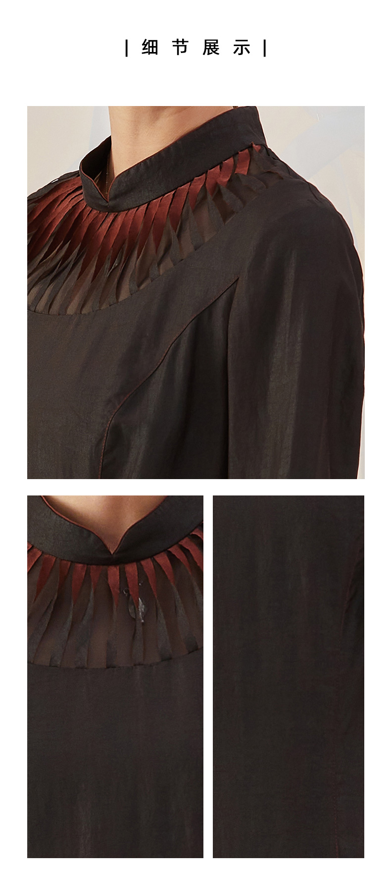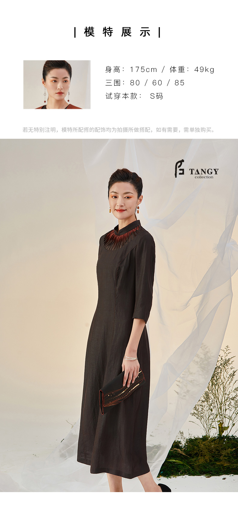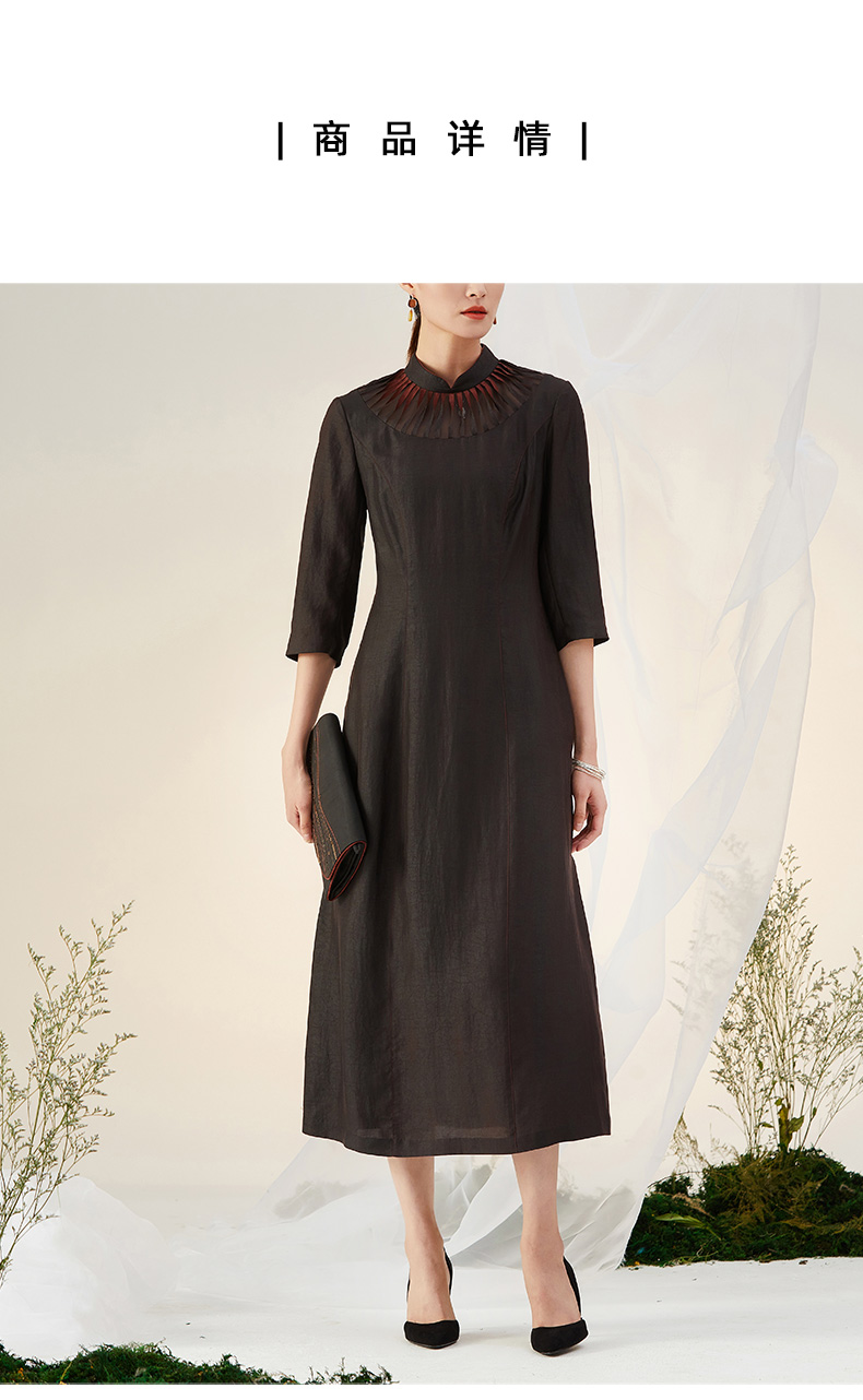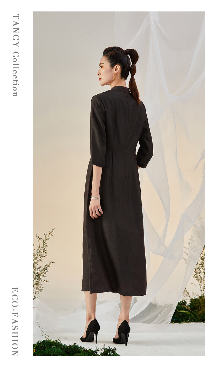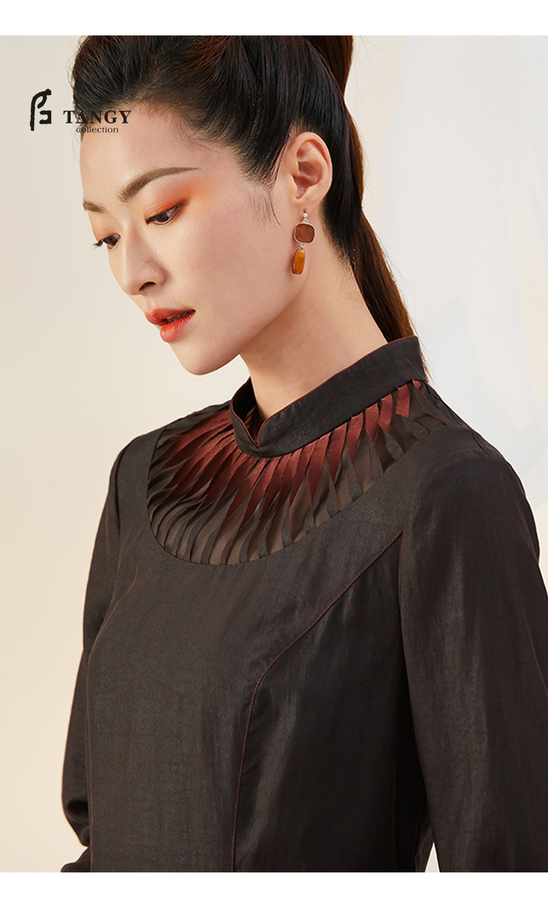 TANGY Collection/天意精品2021年秋冬新品莨绸褶涧香云纱连衣裙