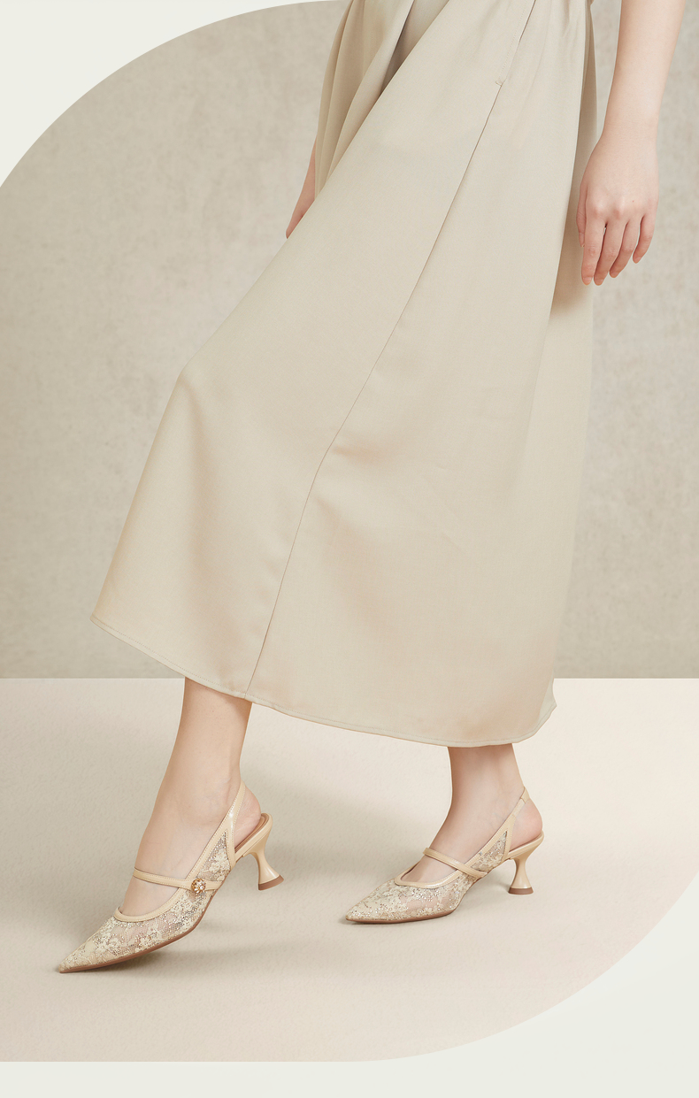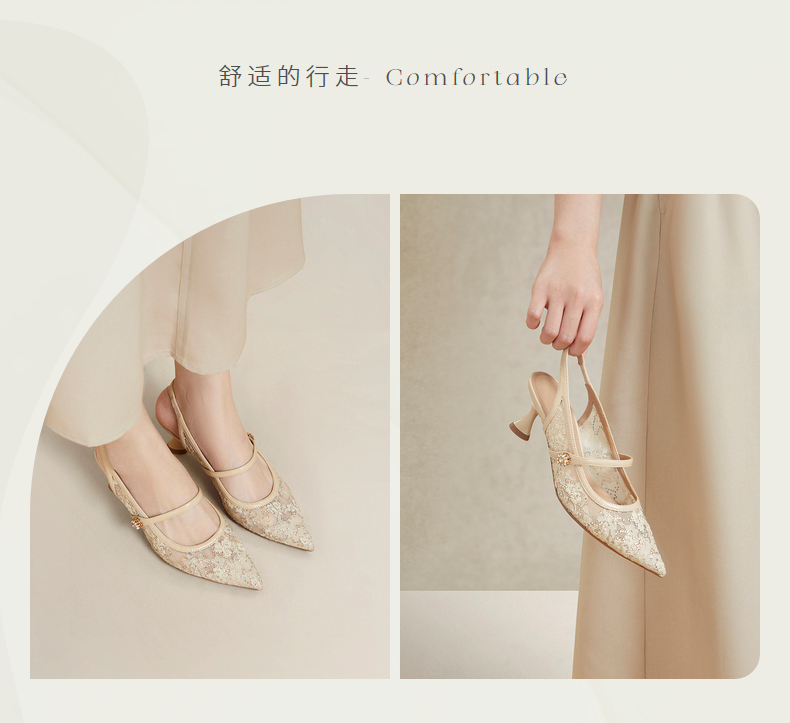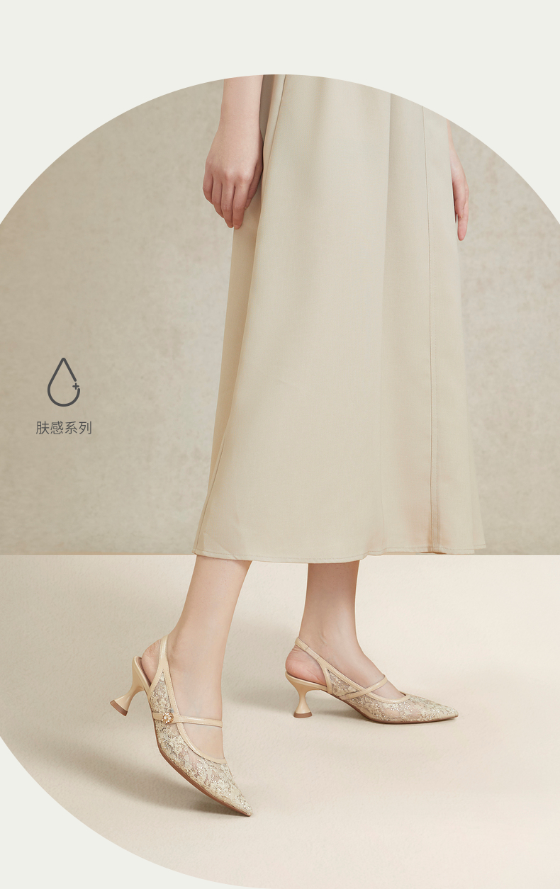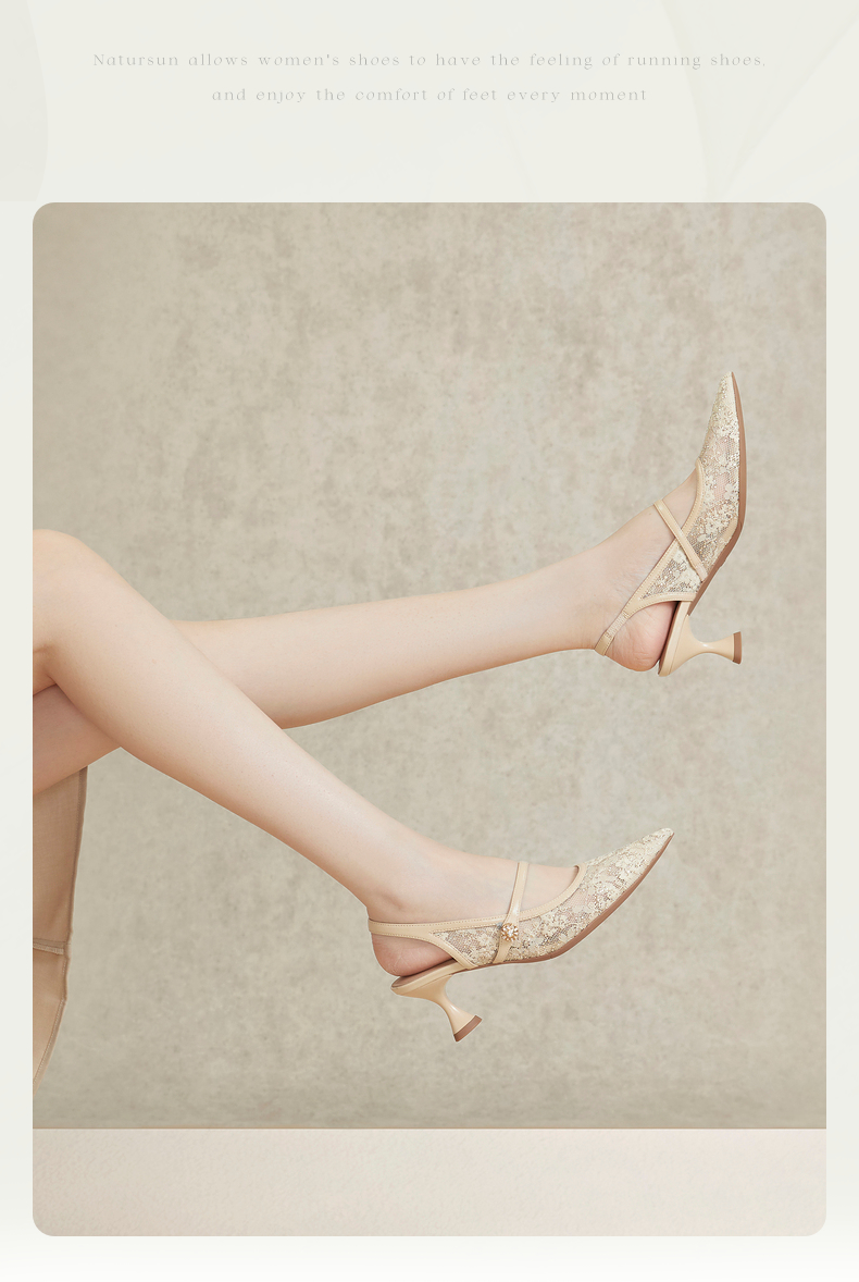 natursun女鞋年夏季小羊皮气质细带凉鞋一字带高跟单鞋女N24224223