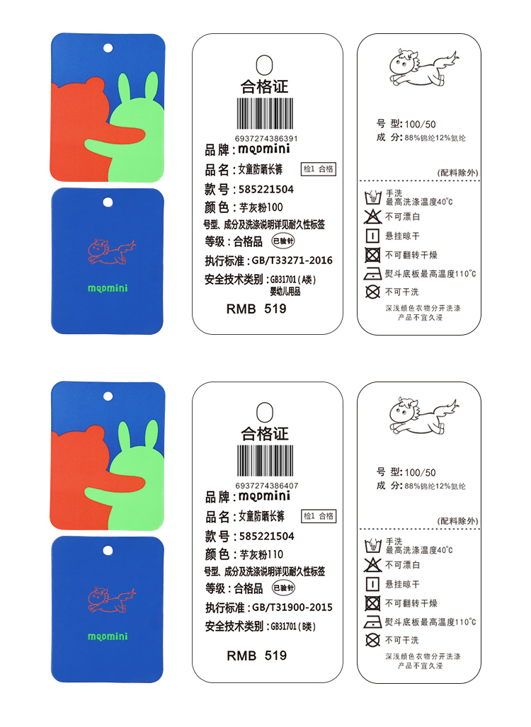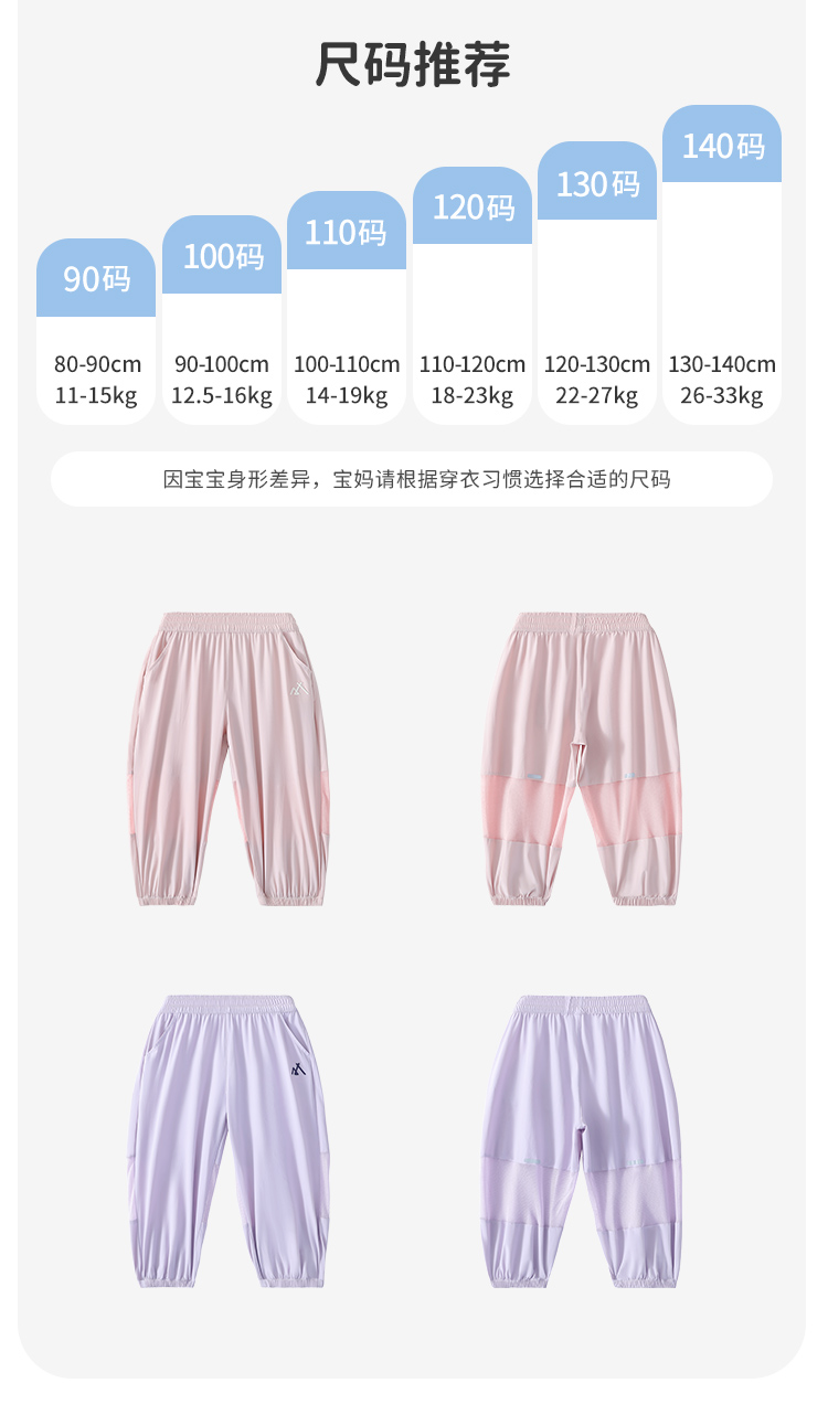 【UPF50+】【90-140】【MQDmini】女童夏款轻薄防晒速干防蚊裤裤子