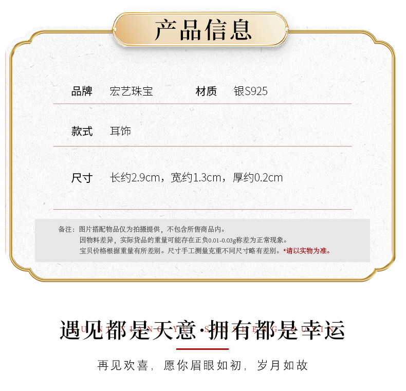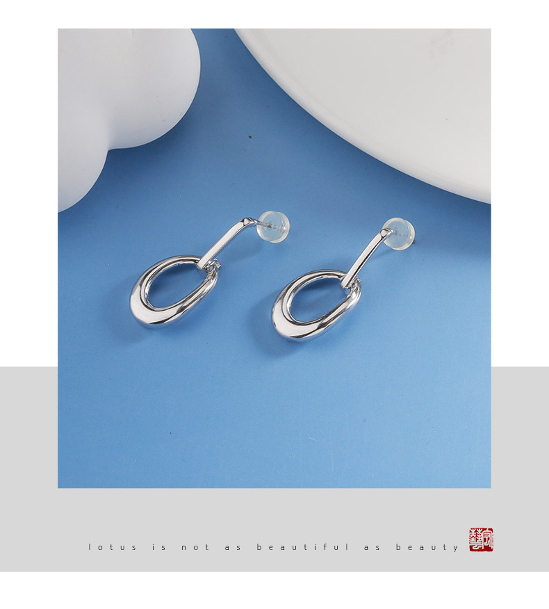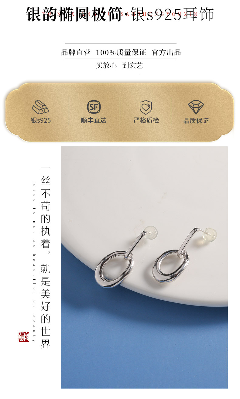 【宏艺珠宝】银韵椭圆极简·银s925耳饰