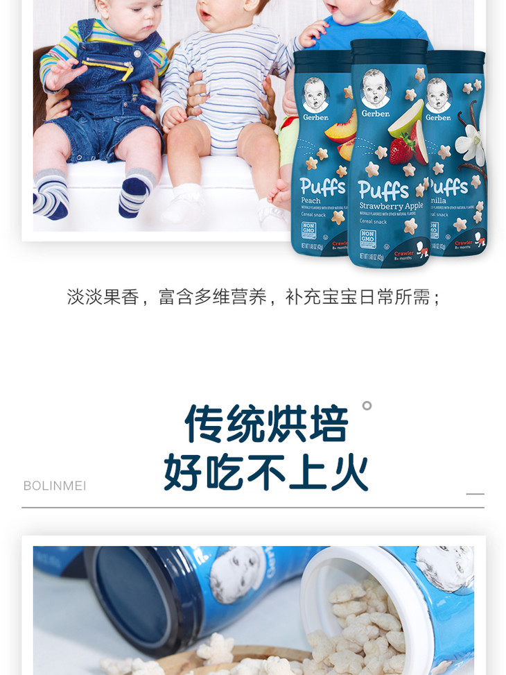 【保税】美国GERBER嘉宝星星泡芙42g 苹果/草莓/香蕉/香草/甜署/蓝莓 宝宝辅食/零食 拍下请备注口味