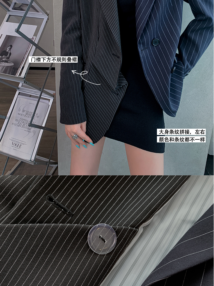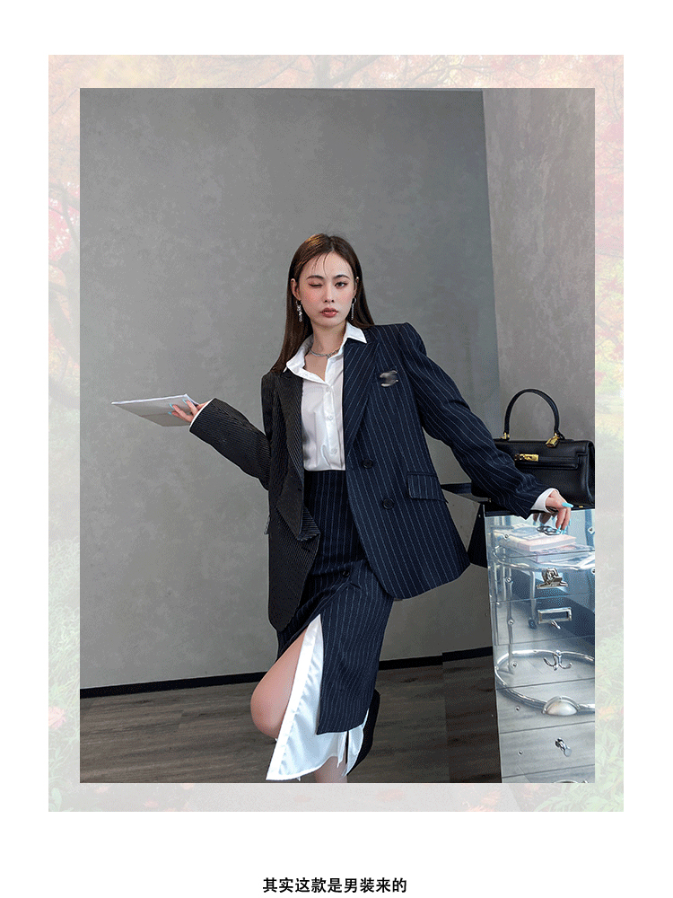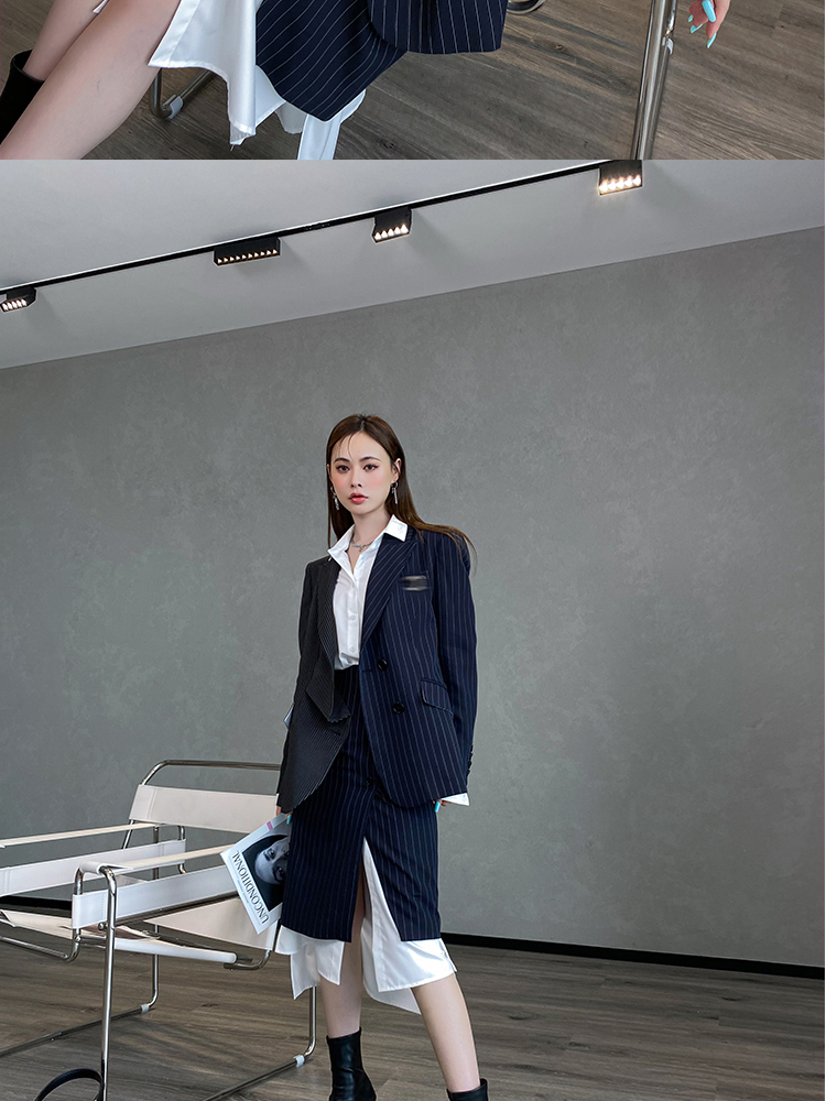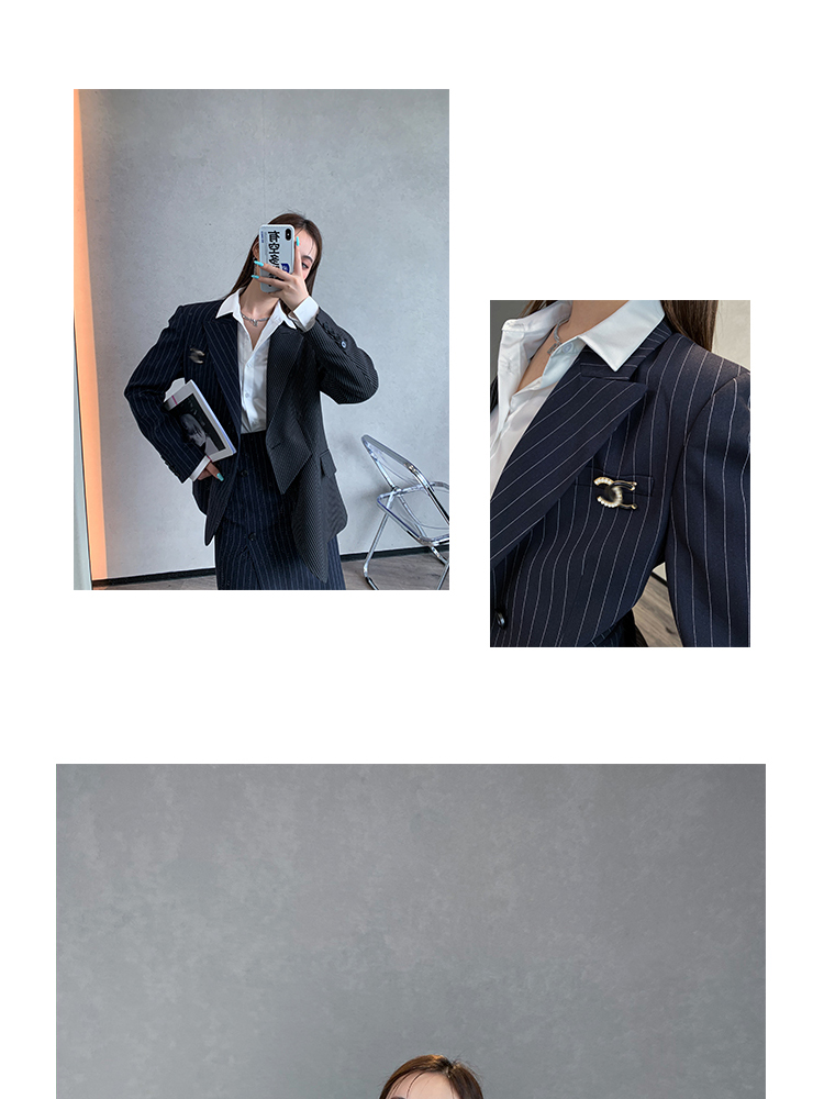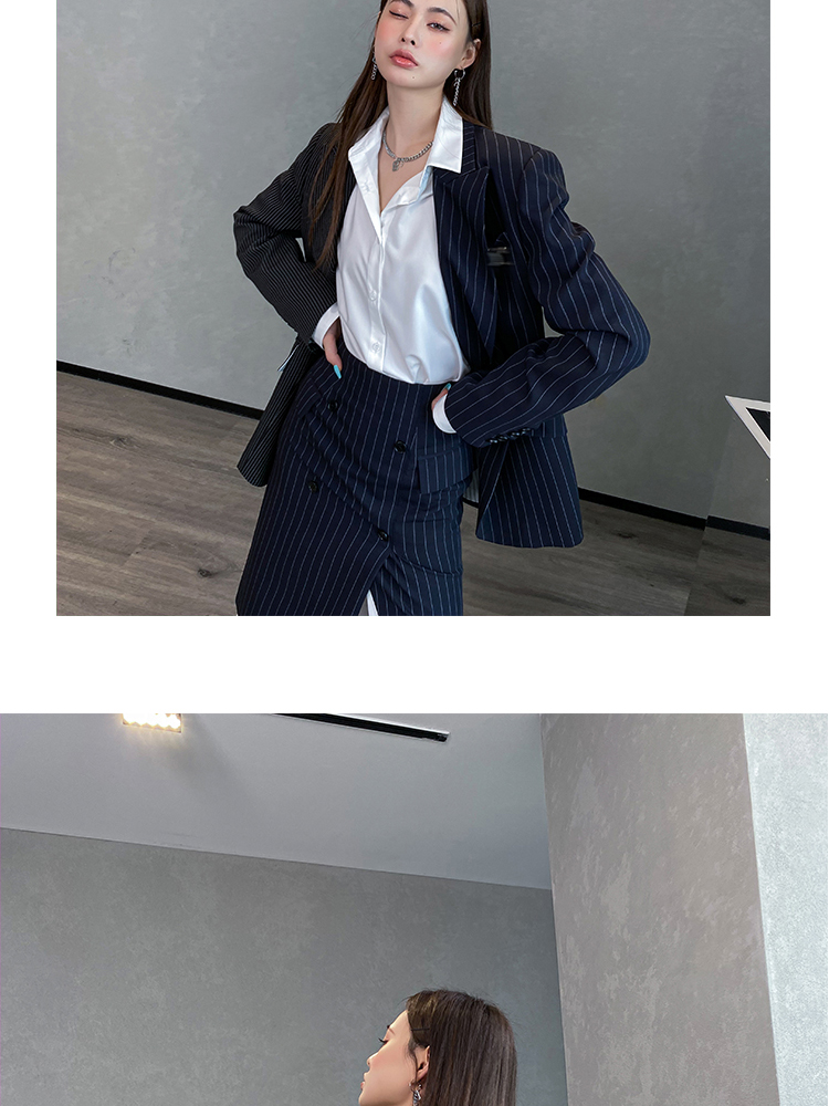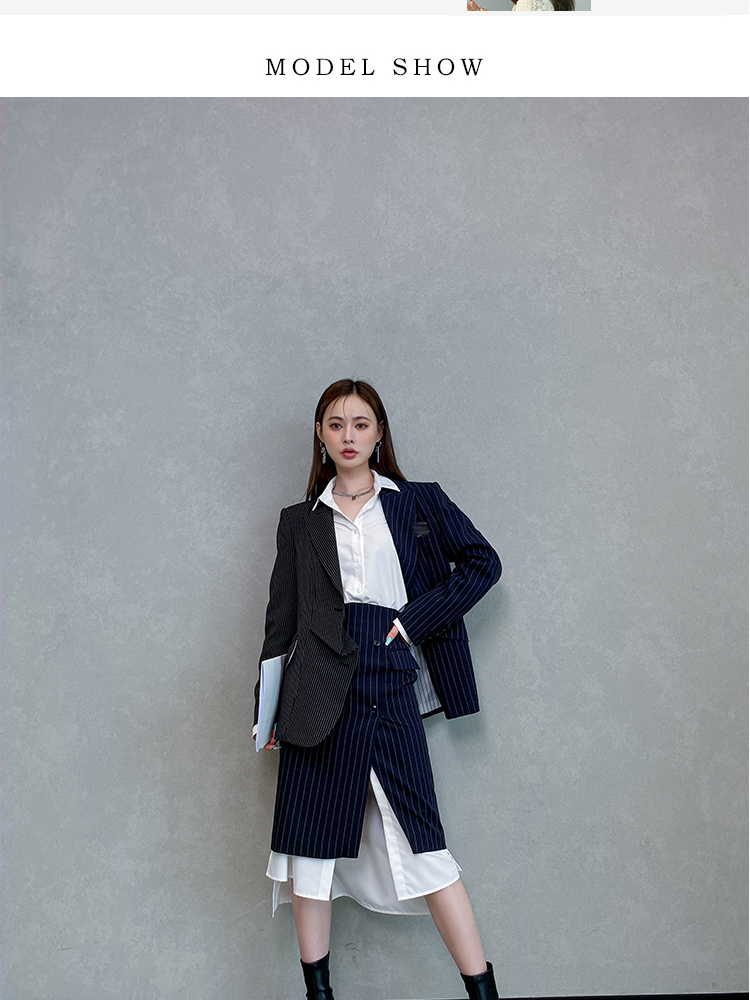 BeQueenStory 【狂野女孩】条纹西装短外套衬衫半身套装