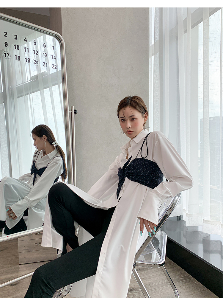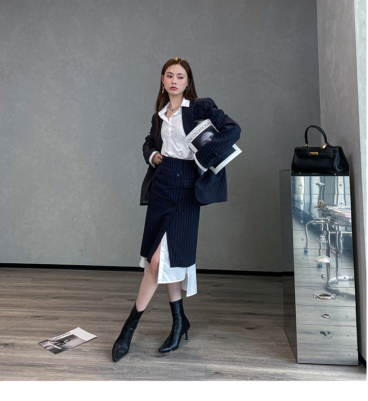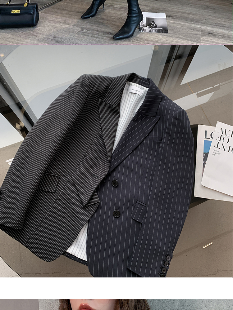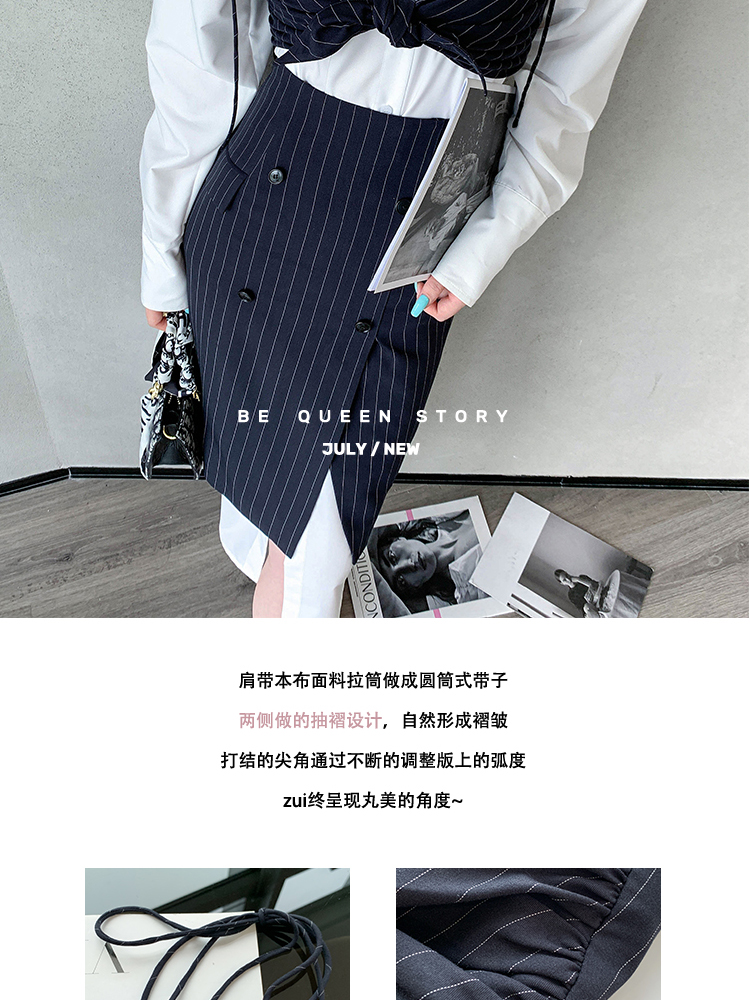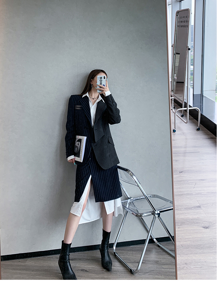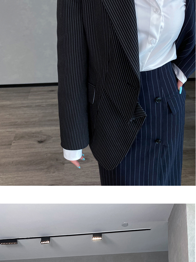 BeQueenStory 【狂野女孩】条纹西装短外套衬衫半身套装