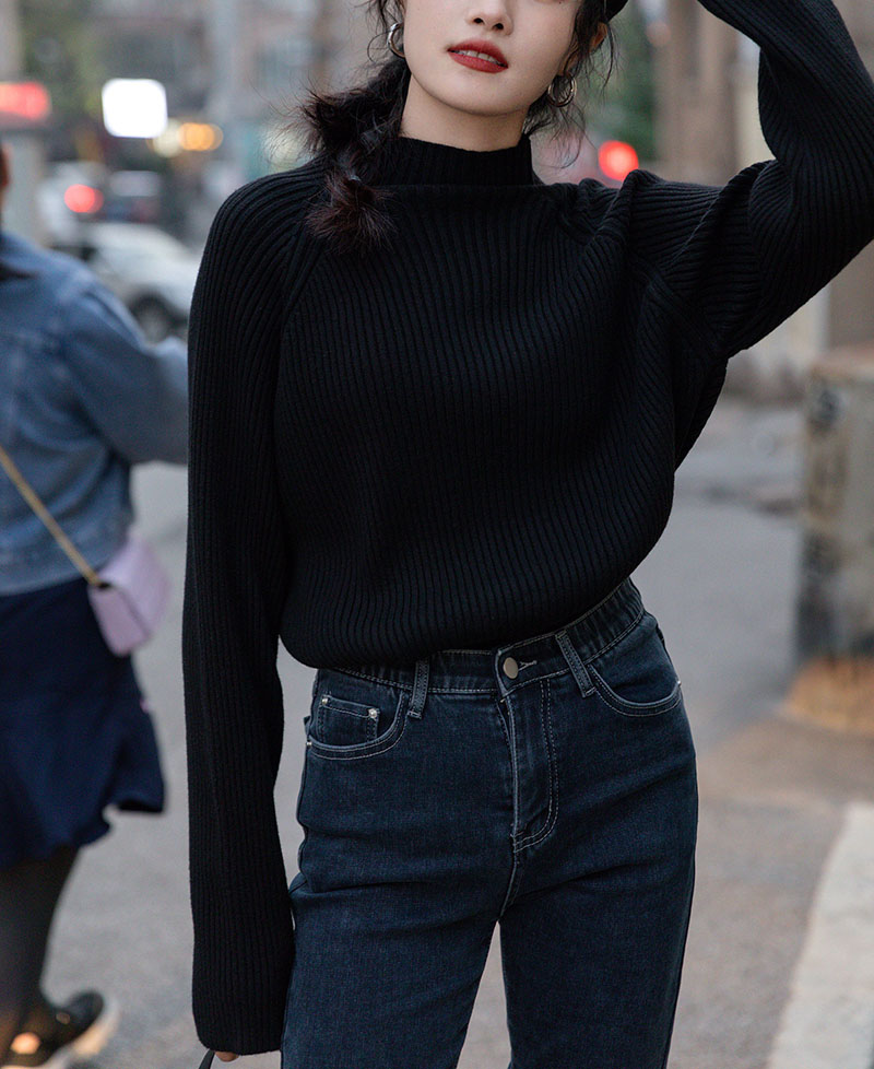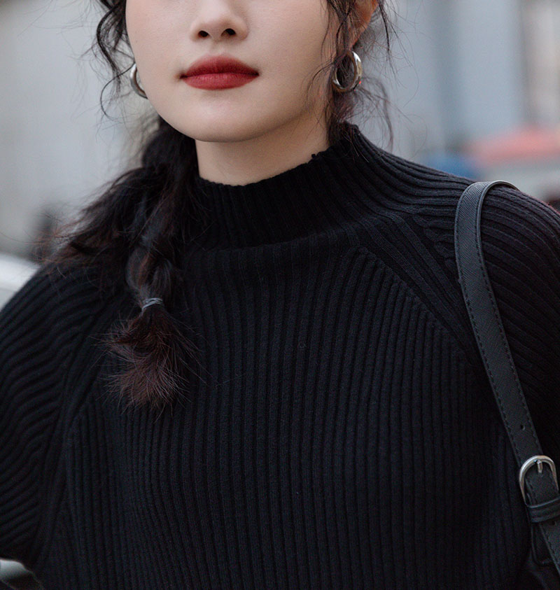 秋冬抗起球半高领RIB纹外穿毛衣7228