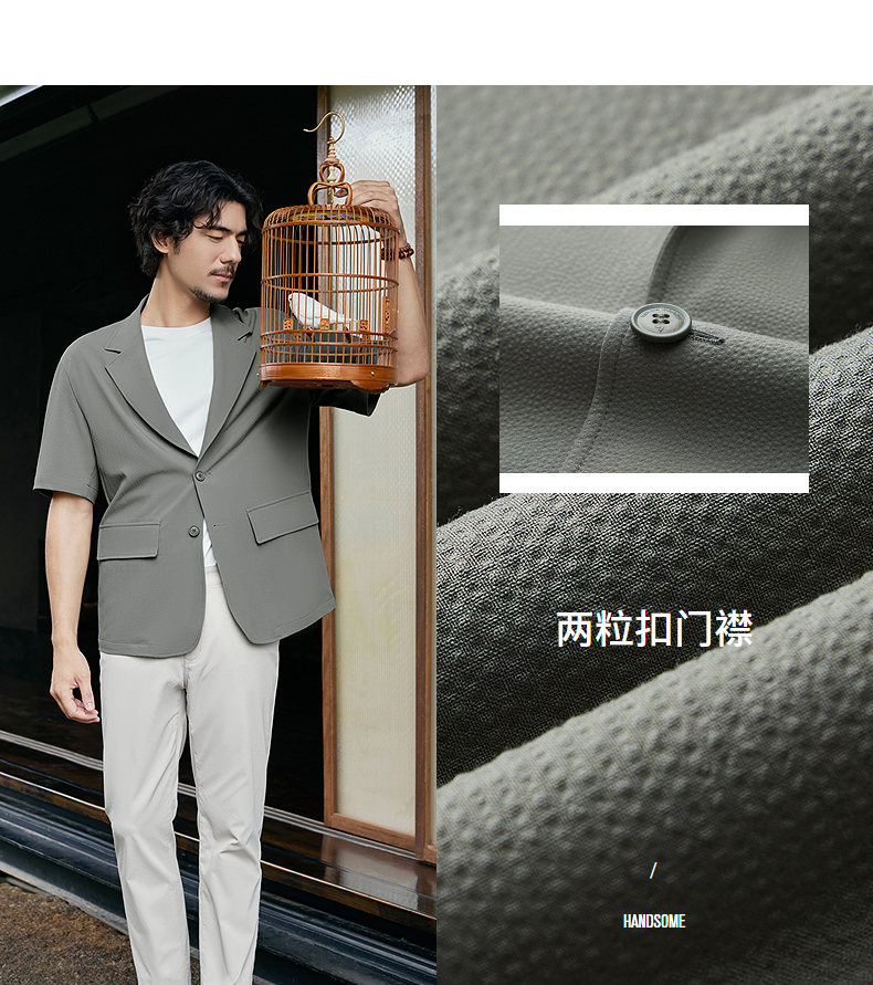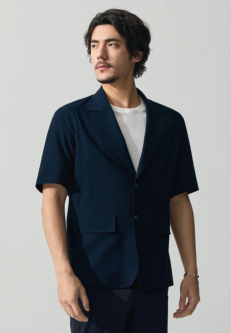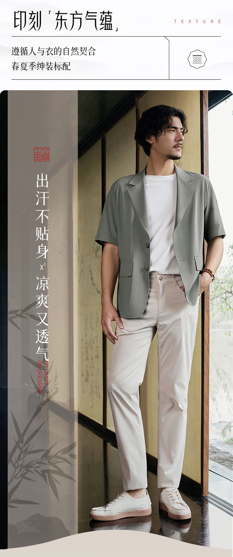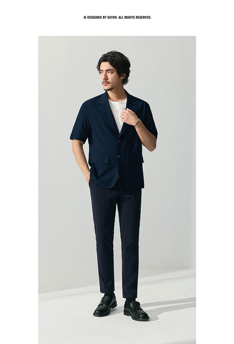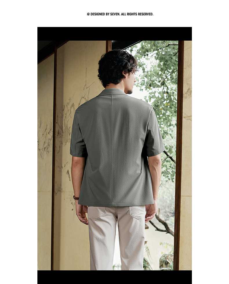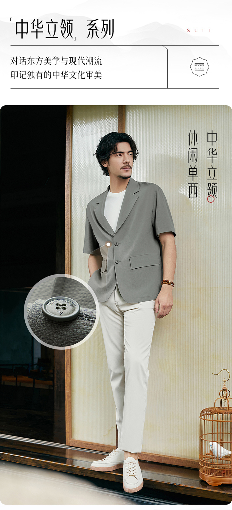【谢震业同款】柒牌短袖西装外套男春夏新款宽松肌理泡泡纱休闲西服128C70190